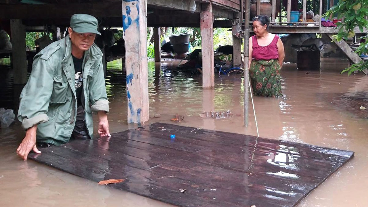 ชาวบ้านใน อ.ประจันตคาม จ.ปราจีนบุรี ลากเก้าอี้ไม้ลอยน้ำอยู่ใต้ถุนบ้านไปเก็บไว้ในที่สูง หลังเกิดน้ำป่าจากอุทยานแห่งชาติเขาใหญ่ไหลเชี่ยวเข้าท่วมหมู่บ้านริมคลองใน ต.บุฝ้าย และ ต.หนองแก้ว อ.ประจันตคาม รวมทั้งสิ้น 120 หมู่บ้าน ทหารจาก มทบ.12 เจ้าหน้าที่กู้ภัย และจิตอาสาเข้าช่วยเหลือขนย้ายข้าวของไปไว้ที่ปลอดภัย.