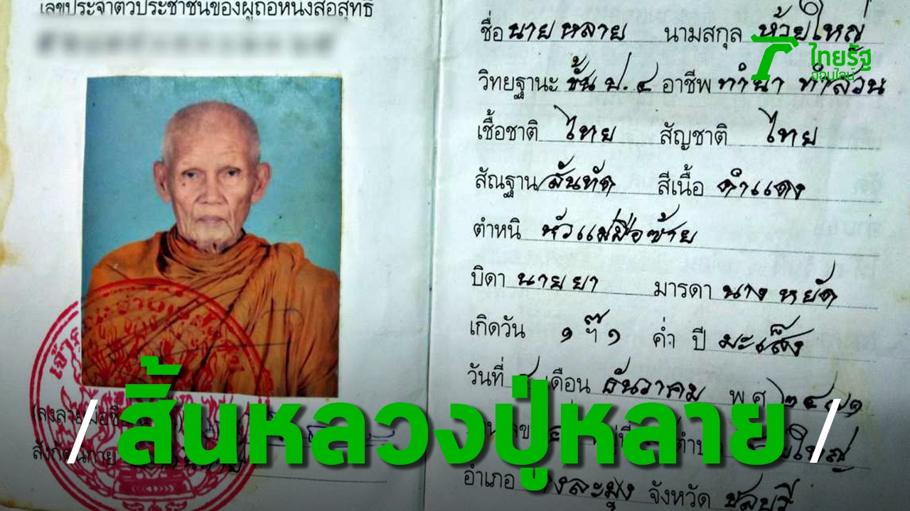 หลวงปู่หลาย อาภรโณ เกจิดังวัดนาจอมเทียน อ.สัตหีบ จ.ชลบุรี ศิษย์ 3 อมตะเถราจารย์แห่งภาคตะวันออก "หลวงพ่อไฮ้-หลวงพ่อลั้ง-หลวงพ่อทองอยู่" ละสังขารด้วยโรคชรา สิริอายุ 91 ปี