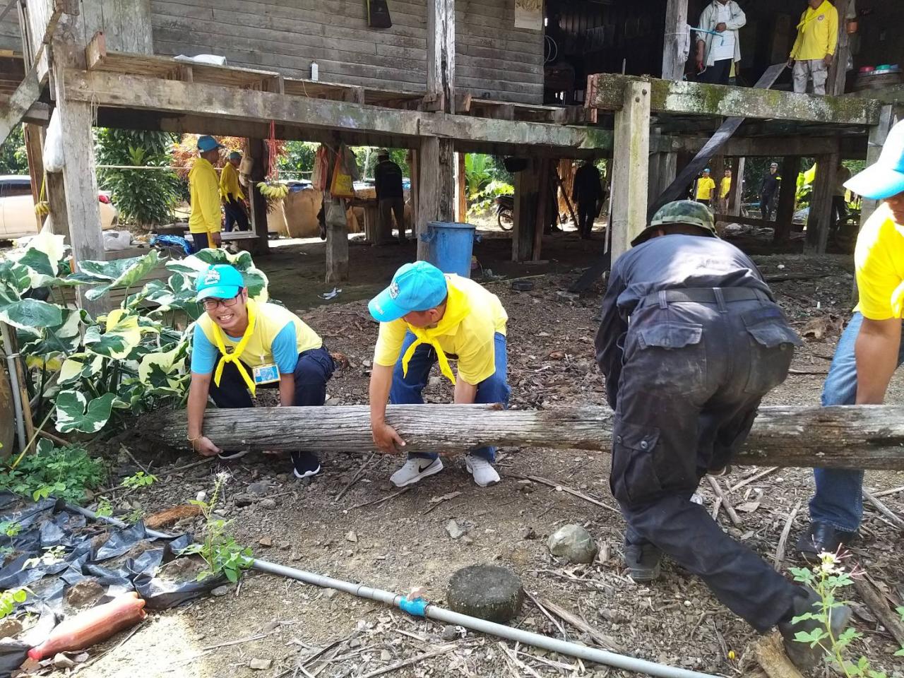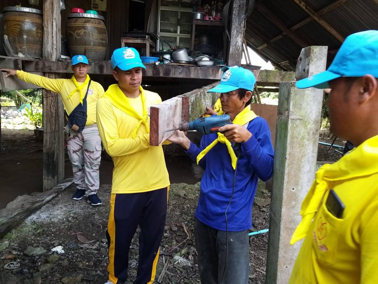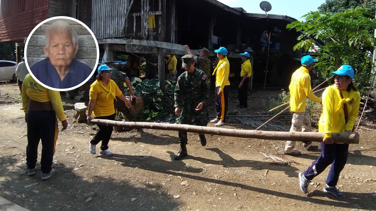 ปลัดอำเภอสอยดาวน้ำ พร้อมด้วยจิตอาสาพระราชทาน 904 วปร. จากทหารเรือ ทหารพราน ปชช. เข้าซ่อมบ้านที่ผุพังให้คุณยาย 5 แผ่นดิน