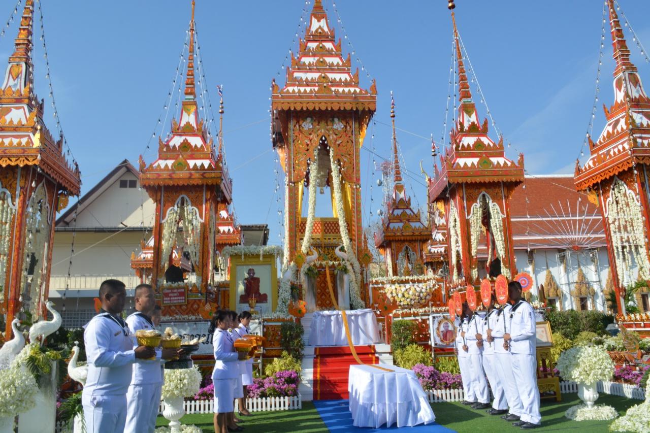 เมื่อเวลา15.00น.วันที่ 8 ธ.ค.62 ที่วัดนาจอมเทียน ต.นาจอมเทียน อ.สัตหีบ จ.ชลบุรี ที่ได้ประกอบพิธีพระราชทานเพลิงศพ พระครูพิพิธชลธรรม (หลวงปู่หลาย อาภรโณ) เกจิดังของตำบลนาจอมเทียน อดีตเจ้าอาวาสวัดนาจอมเทียน อดีตเจ้าคณะตำบลนาจอมเทียน อำเภอสัตหีบ จังหวัดชลบุรี หลังได้มรณภาพลงอย่างสงบ ด้วยโรคชรา ด้วยอายุ 91 ปี พรรษาที่ 63 เมื่อเวลา 13.50 น. ของที่ 19 ก.ย. 62 โดยในวันนี้ได้มีพิธีพระราชทานเพลิงศพ “ นายสนธยา คุณปลื้ม นายกเมืองพัทยา/อดีตรัฐมนตรีว่าการกระทรวงวัฒนธรรม ได้มอบหมาย ดร.สะถิระ เผือกประพันธุ์ (ดร.เอ) สมาชิกสภาผู้แทนราษฎร เขต 8 อ.สัตหีบ จ.ชลบุรี เป็นประธานในพิธีพระราชทานเพลิงศพสรีรสังขาร โดยมี ผู้บริหารองค์กรปกครองส่วนท้องถิ่น ข้าราชการทหาร ข้าราชการตำรวจ กำนัน ผู้ใหญ่บ้าน ผู้นำท้องที่ ผู้นำท้องถิ่น และพี่น้องประชาชน อำเภอสัตหีบร่วมพิธีคับคั่ง ณ เมรุชั่วคราว วัดนาจอมเทียน ต.นาจอมเทียน อ.สัตหีบ จ.ชลบุรี
