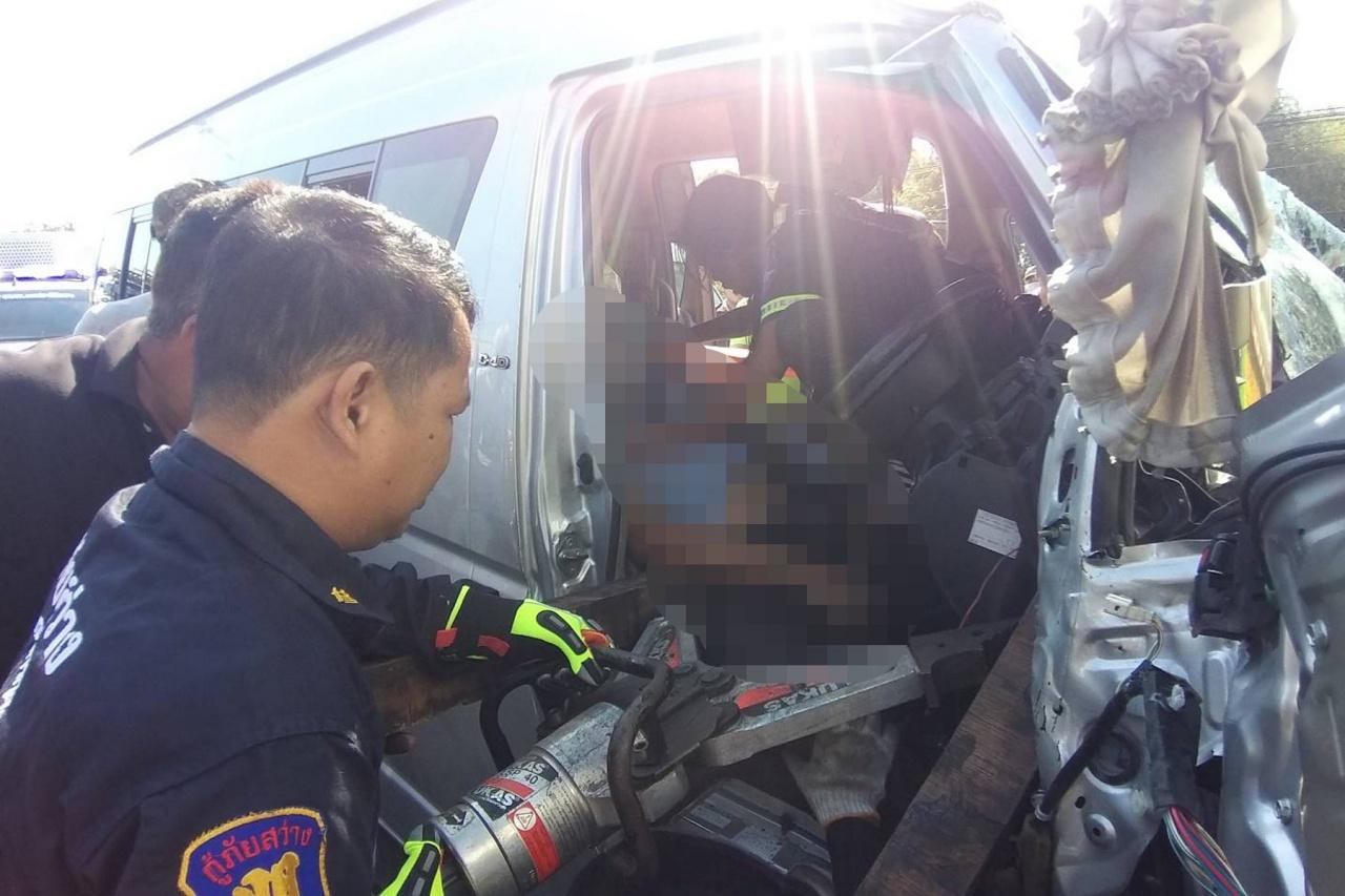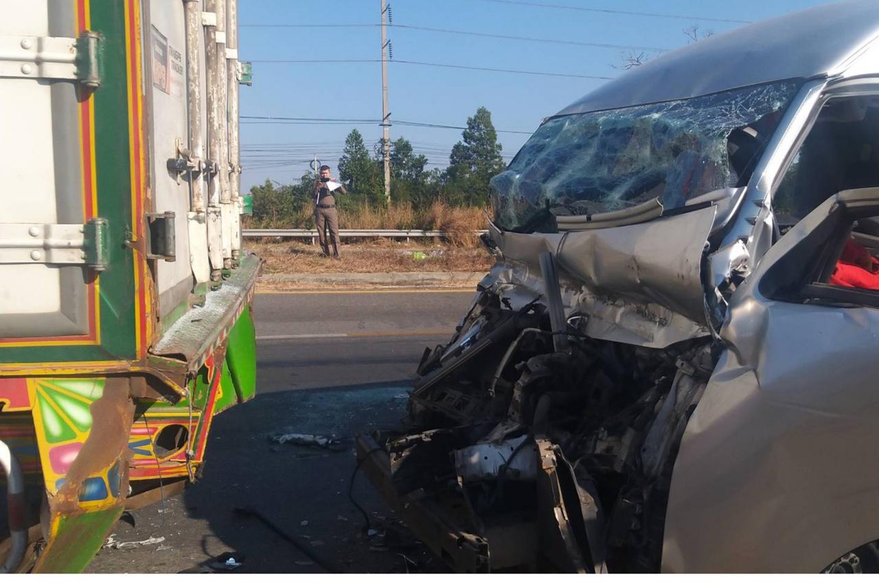 เมื่อวันที่ 9 ธ.ค.62 พ.ต.ต.ปรีชา จุลโพธิ์ พนักงานสอบสวน สภ.ระเบาะไผ่ อ.ศรีมหาโพธิ จ.ปราจีนบุรี ได้รับแจ้งจากหน่วยกู้ภัยสว่างบำเพ็ญ ว่าได้เกิดอุบัติเหตุ รถตู้โดยสารรับจ้างไม่ประจำทาง ชนท้ายรถบรรทุก 6 ล้อ บรรทุกสินค้า บริเวณถนนสาย 304 แยกสัญญาณไฟจราจรนิคมโรจนะ มีผู้ได้รับบาดเจ็บจำนวน 2 ราย และคนขับติดภายในอีก 1 ราย