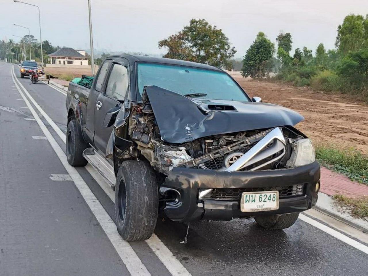 รถกระบะพ่อค้าขายเสื้อผ้าพุ่งชนม้าสาวที่วิ่งหลุดจากคอกกลางถนนขาเข้าชุมชนหนองจับเต่า หน้าบ้านกลับหัว อ.สัตหีบ ทำให้รถพังยับ ส่วนม้านอนจมกองเลือดขาดใจตายคาที่ โดยทั้งสองฝ่ายกำลังเจรจาค่าเสียหาย