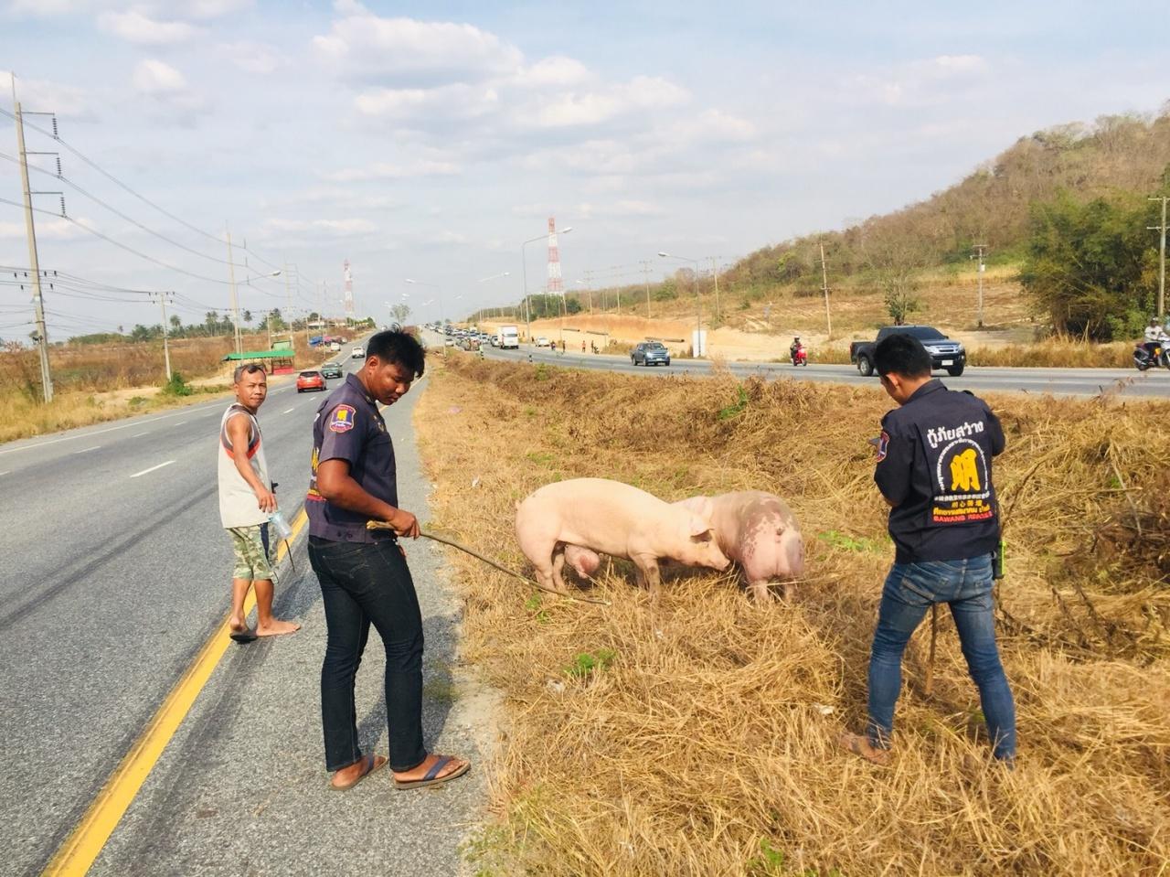 เมื่อช่วงเวลา 15.00 น. วันที่ 2 ม.ค.63 ร.ต.อ.ประกาส ยัตติ รองสารวัตร (สอบสวน) สภ.คลองกิ่ว ได้รับแจ้งจากศูนย์วิทยุหน่วยกู้ภัยศีลธรรมสมาคมบ้านบึง ว่ามีอุบัติเหตุรถกระบะบรรทุกหมูพลิกคว่ำบนถนนสาย 331 เขาเรด้า (ขาเข้าสัตหีบ) หมู่ 7 ตำบลคลองกิ่ว อำเภอบ้านบึง จังหวัดชลบุรี และมีหมูเดินอยู่กลางถนนทำให้มีรถของประชาชนเกิดการจราจรติดขัดจำนวนมาก หลังรับแจ้งจึงรีบรุดเดินทางเข้าตรวจสอบพร้อมอาสากู้ภัย