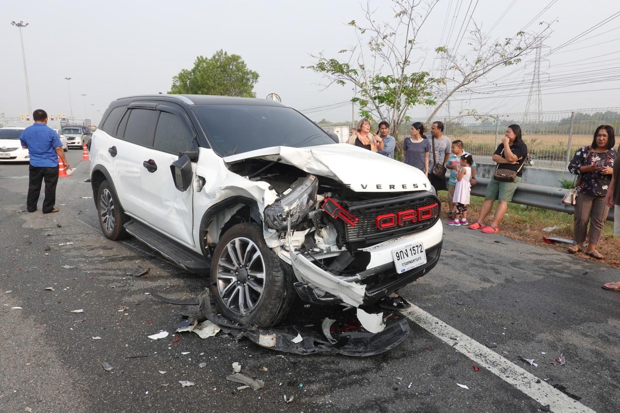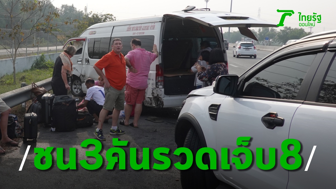 รถตู้นักท่องเที่ยวชาวฝรั่งเศสและคนไทยรวม 8 คนชนท้ายเก๋งที่ชะลอตัวด้านหน้า บนถนนมอเตอร์เวย์ สาย7 พื้นที่ อ.บางปะกง ก่อนจะเสียหลักไปชนเก๋งอีกคันที่อยู่ช่องซ้ายทำให้ได้รับบาดเจ็บทั้งคัน
