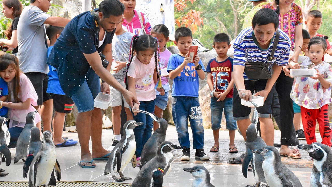 ผู้ปกครองพาลูกหลานเข้ามาชมความน่ารักของขบวนนกเพนกวินที่มีมากถึง 40 ตัว ขณะพาเหรดเดินตามเส้นทางจากด้านในส่วนแสดงออกมายังสระน้ำด้านหน้า เพื่อให้เด็กๆสัมผัสความน่ารักและให้อาหารเพนกวินอย่างใกล้ชิด เป็นที่ถูกอกถูกใจของน้องๆหนูๆ ภายในสวนสัตว์เปิดเขาเขียว อ.ศรีราชา จ.ชลบุรี ซึ่งเปิดให้เด็กเข้าชมฟรี พร้อมลุ้นรับของขวัญ เนื่องในวันเด็กแห่งชาติ ประจำปี 2563.