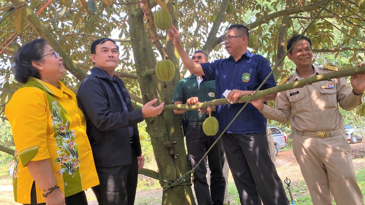 พร้อมกันนี้ นายชาตรีและคณะได้ลงพื้นตรวจเยี่ยมการบริหารจัดการสวนและน้ำทุเรียนในช่วงออกดอก ของนายภักดี ไข่แก้ว ประธานแปลงใหญ่ทุเรียน หมู่ที่ 10 ต.บ่อ อ.ขลุง จ.จันทบุรี โดยปลูกทุเรียนพันธุ์หมอนทอง กระดุม และพวงมณี บนพื้นที่ 40 ไร่ คาดว่าจะสามารถเก็บผลผลิตได้ในช่วงเดือน มี.ค.63 นี้