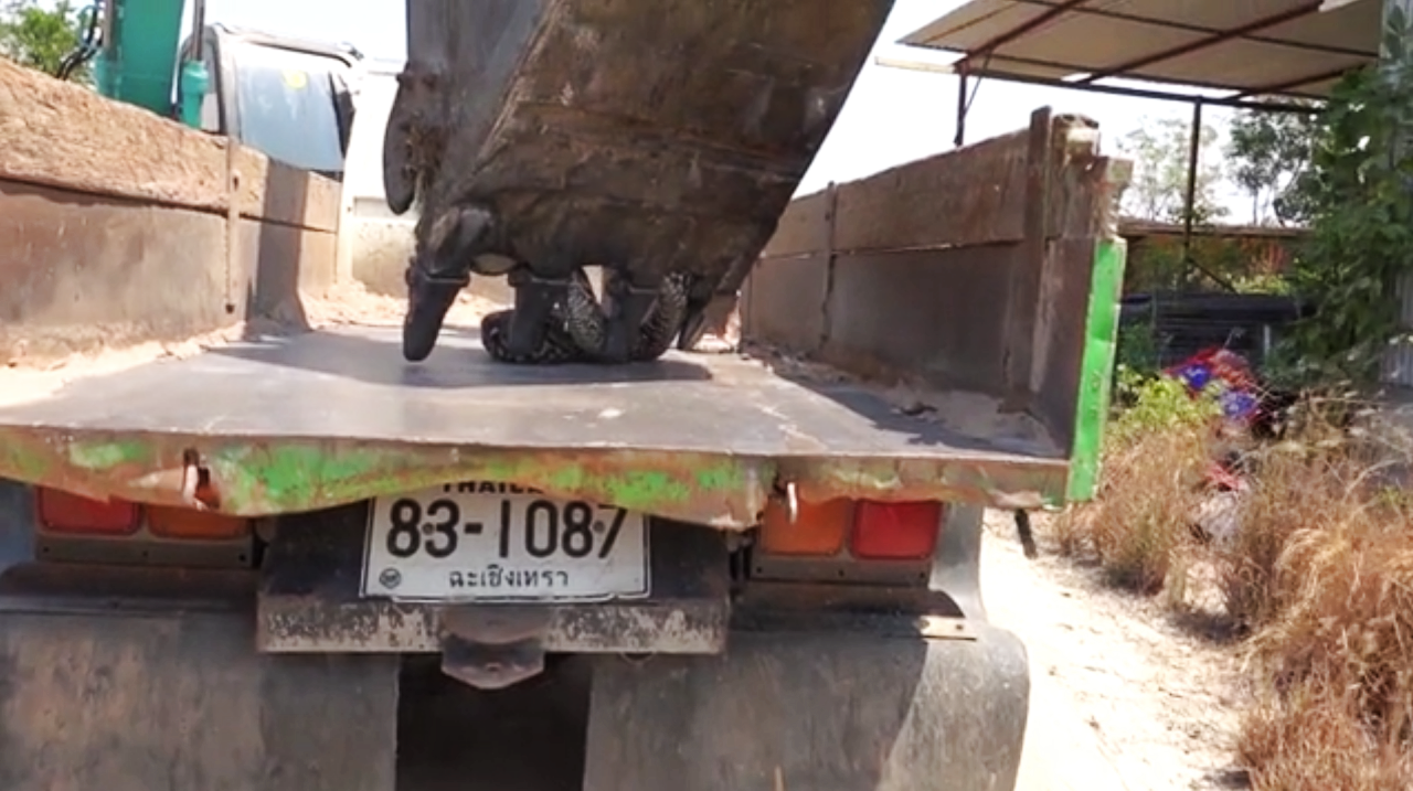 ทั้งนี้ นายธนู เผยว่า ขณะที่นำรถแบ็กโฮมาปรับพื้นที่บริเวณดังกล่าวเพื่อเตรียมถมดิน ระหว่างนั้นเห็นงูเหลือมตัวดังกล่าวเลื้อยเข้ามาที่บุ้งกี๋ ตนเองพยายามจะเขี่ยงูเหลือมให้หลบไป แต่งูเหลือมก็ไม่หลบ จึงหันหน้ารถแบ็กโฮไปทำบริเวณอื่น แต่งูเหลือมก็เลื้อยตามมาอีก จึงทำตัดสินใจใช้บุ้งกี๋ตักงูเหลือมตัวดังกล่าวขึ้นมาแล้วโทรแจ้งกู้ภัย.