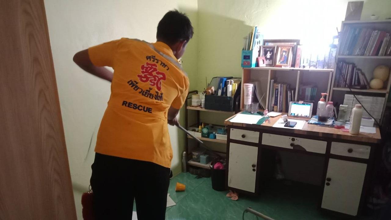 สอบถามนางเรียบ กล่าวว่า ก่อนเกิดเหตุตนเองได้ตะโกนเรียกแมว ที่ตนเองเลี้ยงไว้ ได้รีบเข้าบ้าน เนื่องจากจะมีฝนตกลงมาแล้ว แต่ปรากฏว่า ขณะนั้นก็ได้มีแมวของตนเองวิ่งออกมาจากป่าหญ้าด้วยท่าทางที่ตื่นตกใจ และมีตัวเงินตัวทอง วิ่งตามหลังมาติดๆ ก่อนที่จะเข้าไปหลบซ่อนตัวอยู่ภายในบ้าน ตนเองจึงรีบแจ้งกู้ภัยเข้าช่วยเหลือ.