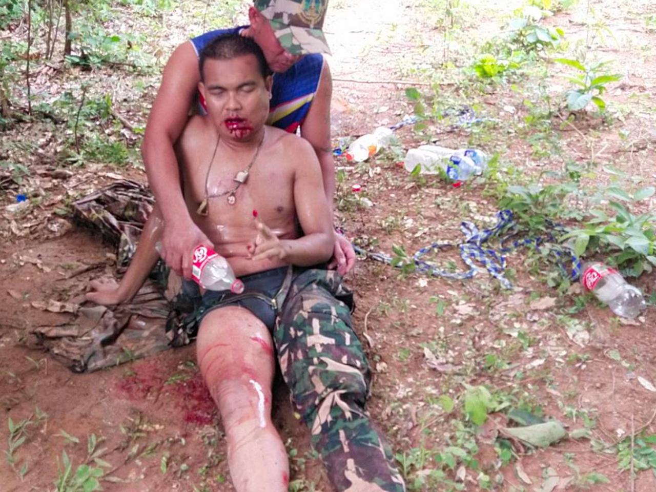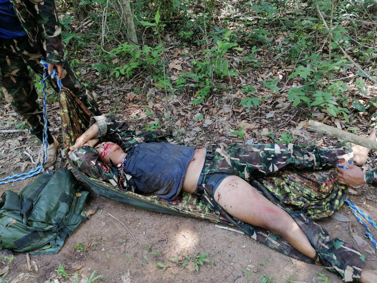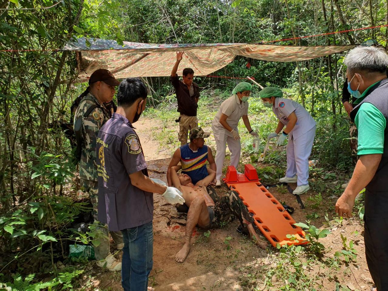 จึงประสานเจ้าหน้าที่ฝ่ายปกครอง ทีมกู้ชีพจากโรงพยาบาลท่าตะเกียบ และทหารพรานที่ 1306 รุดเข้าช่วยเหลือ ซึ่งเจ้าหน้าที่ต้องเดินเท้า เข้าไปในป่าลึกท้ายหมู่บ้าน ก่อนจะมาพบ ผู้บาดเจ็บ ทราบชื่อคือ นายเศรษพงศ์ บุญลา เป็นเจ้าหน้าที่เขตรักษาพันธุ์สัตว์ป่าเขาอ่างฤาไน ปฏิบัติหน้าที่ลาดตระเวน ในพื้นที่ดังกล่าว อยู่ในอาการบาดเจ็บสาหัส เลือดออกปาก เสื้อผ้าขาดหลุดลุ่ย