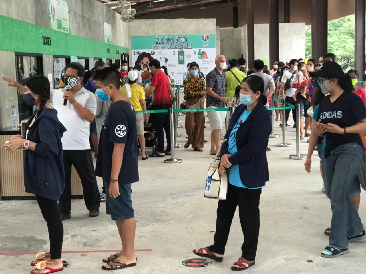 นายอรรถพร ศรีเหรัญ ผู้อำนวยการสวนสัตว์เปิดเขาเขียว เปิดเผยว่า สวนสัตว์เปิดเขาเขียวได้เปิดเข้าชมวิถีใหม่แห่งการท่องเที่ยว Zoo New Normal เป็นวันแรกที่เปิดให้ประชาชนเข้าชมฟรี ได้เสียงตอบรับเป็นอย่างดี เจ้าหน้าที่สวนสัตว์ทุกฝ่ายมีการคัดกรองประชาชนที่เข้ามาท่องเที่ยวในสวนสัตว์อย่างเข้มงวด นักท่องเที่ยวต้องสวมใส่หน้ากากอนามัย วัดอุณหภูมิร่างกาย ใช้เจลแอลกอฮอล์ล้างมือ สแกนไทยชนะ อยู่ห่างกันอย่างน้อย 1 เมตร ตามนโยบายรัฐมนตรี กระทรวงทรัพยากรธรรมชาติและสิ่งแวดล้อม ที่ให้นโยบาย อสส. กําหนดให้เที่ยวชมสวนสัตว์ฟรีทั่วประเทศทั้ง 6 แห่ง ได้แก่ สวนสัตว์เปิดเขาเขียวชลบุรี สวนสัตว์เชียงใหม่ สวนสัตว์นครราชสีมา สวนสัตว์สงขลา สวนสัตว์ขอนแก่น และสวนสัตว์อุบลราชธานี ตั้งแต่วันที่ 15 มิถุนายนถึง 30 มิถุนายน ตลอดเส้นทาง