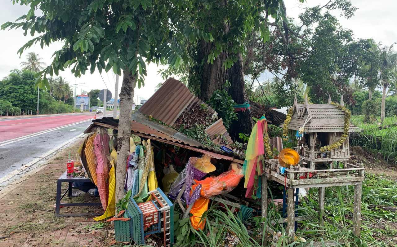 เมื่อวันที่ 17 มิ.ย.63 ที่บริเวณถนนสายทางหลวงชนบทเส้นทางหนองจับเต่า-เขาชีจรรย์ ต.นาจอมเทียน อ.สัตหีบ จ.ชลบุรี พบศาลเจ้าแม่ตะเคียน ซึ่งอยู่ใต้ต้นตะเคียนสูงใหญ่ที่มีอายุกว่าร้อยปี ได้ถูกพายุฝนที่ตกหนักและลมพัดจนพังเสียหาย