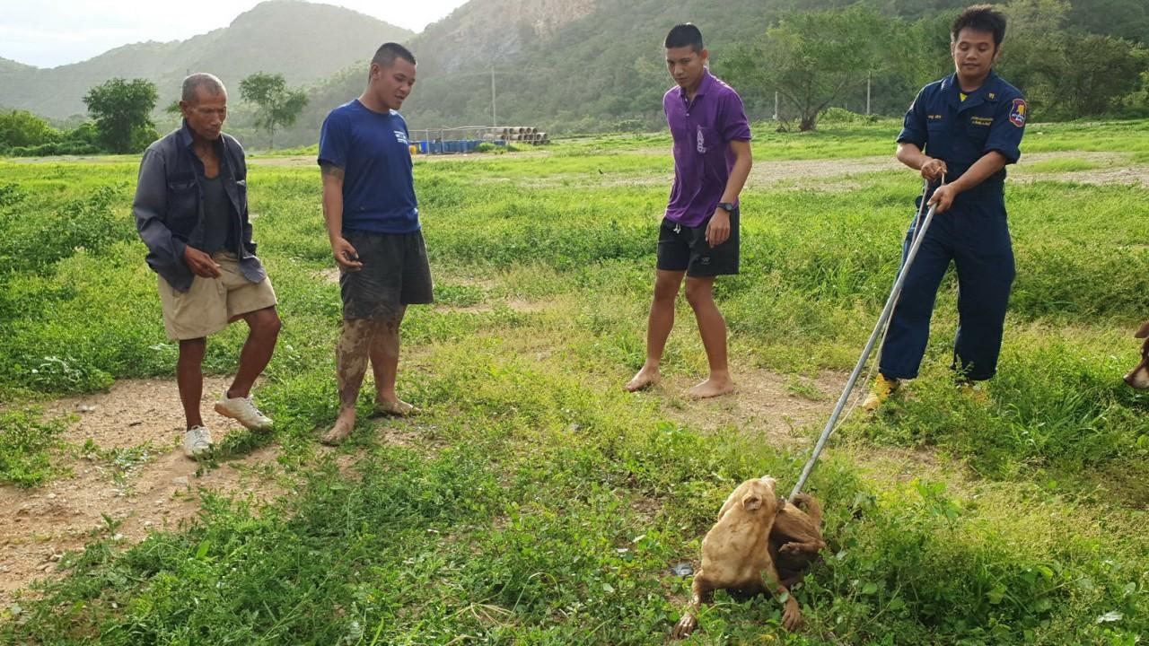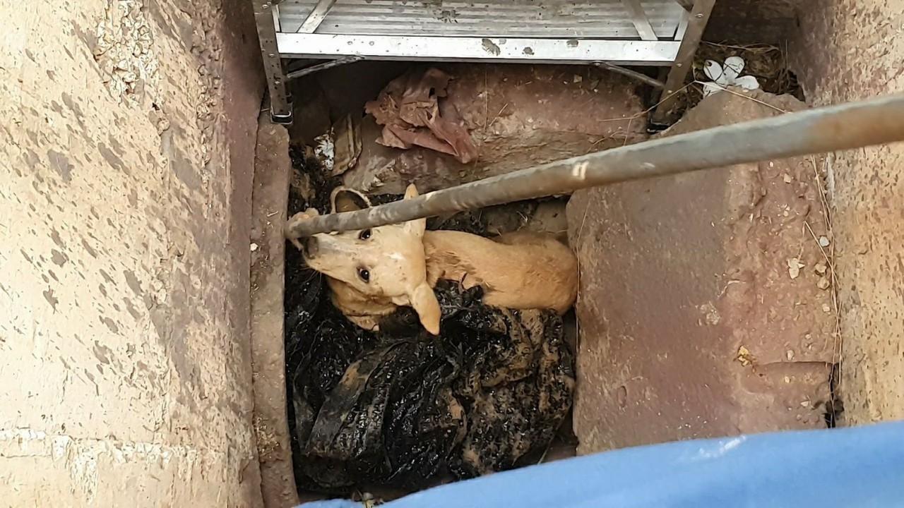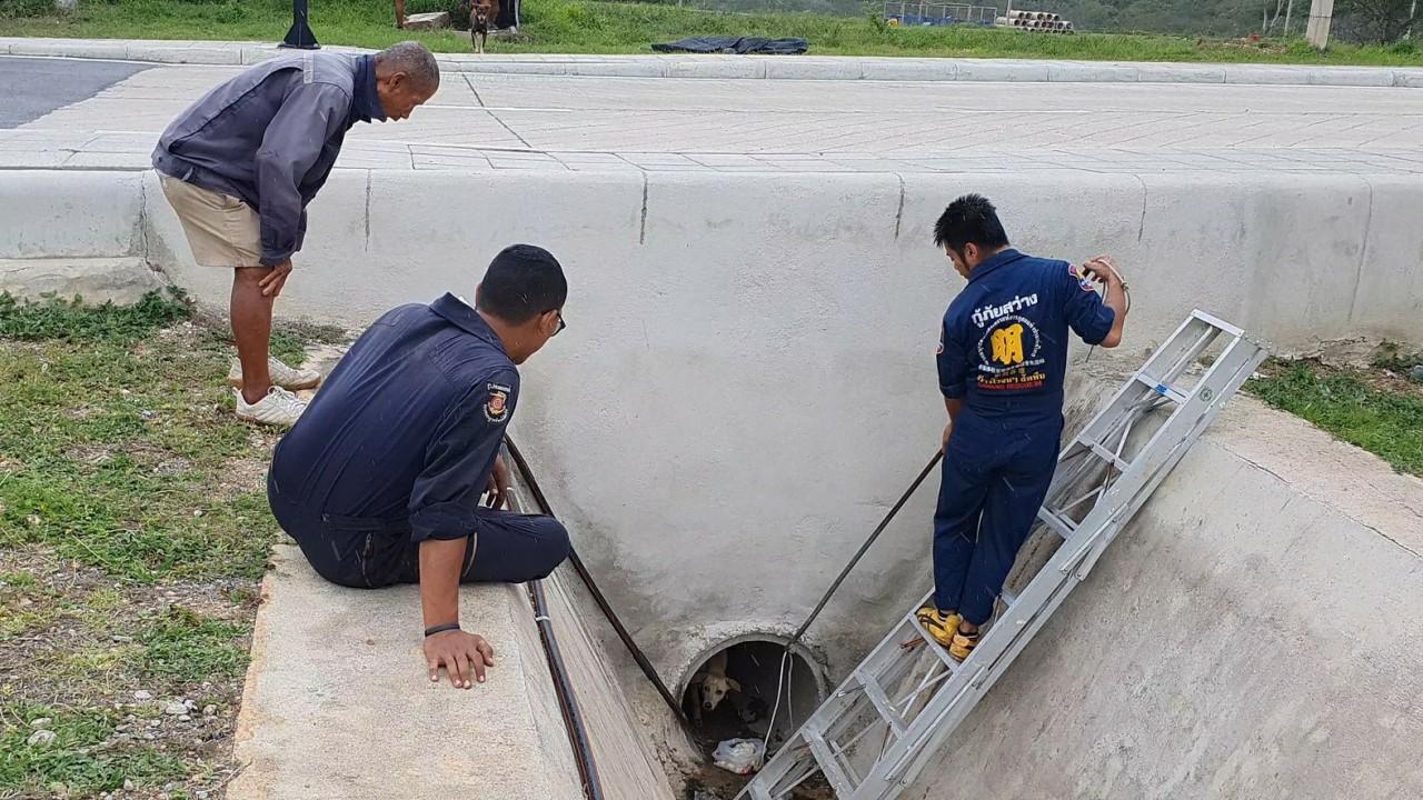 ที่เกิดเหตุเป็นท่อระบายน้ำลึกประมาณ 3 เมตร ในท่อพบเสียงร้องของ "เจ้าโชค" สุนัขจรจัด พันธุ์ไทย เพศเมีย สีน้ำตาล อายุ 2 ปี มีนิสัยดุร้าย โดยมีเจ้ากาแฟ สุนัขพันธุ์ไทย เพศผู้ อายุ 2 ปี กำลังเฝ้าดูอย่างไม่ห่างไปไหน เจ้าหน้าที่กู้ภัยได้หาวิธีช่วยเหลืออยู่นานเกือบ 2 ชม. จึงสามารถต้อนให้สุนัขเดินออกมาบริเวณปากท่อ ก่อนจะใช้ห่วงเชือกคล้องคอ และอุ้มดึงขึ้นมากจากท่อได้สำเร็จ