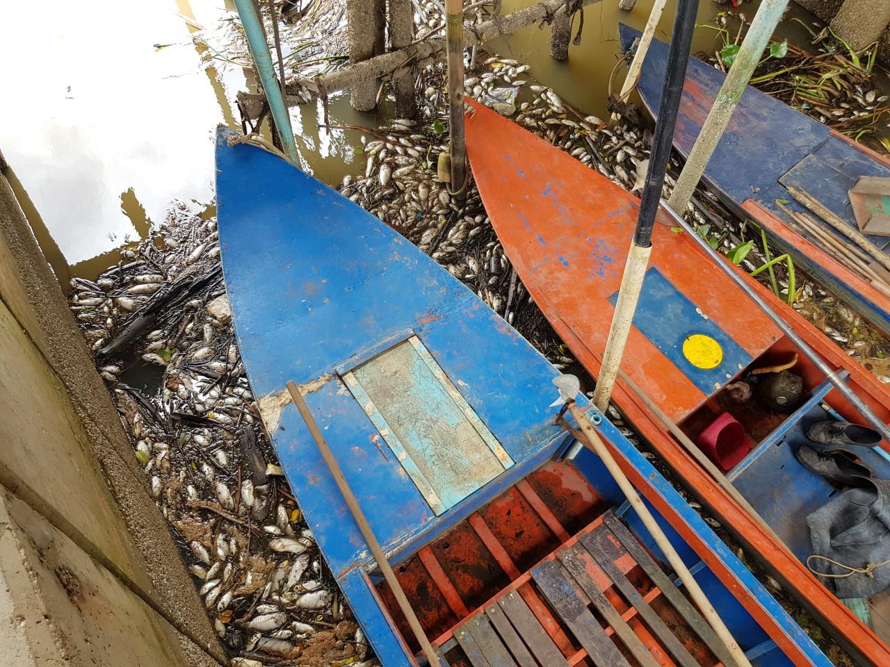 ด้าน นางสายรุ้ง คล้องแคล้ว ผู้ใหญ่บ้าน ม.3 ต.ทุ่งควายกิน กล่าวว่า ตนได้รับแจ้งจากลูกบ้านว่าพบเห็นปลาลอยตาย มาตรวจสอบดูพร้อมแจ้งหน่วยงานที่รับผิดชอบมาดู โดยมีนายแพทย์บัญญัติ เจตนจันทร์ ส.ส.ในพื้นที่ได้ลงมาดูแล้วประสานหน่วยงาน คือ กรมประมง กรมทรัพยากรและสิ่งแวดล้อม มาเก็บตัวอย่างปลา และน้ำไปตรวจ แต่ไม่ทราบว่าปลาลอยตายเกลื่อนจากสาเหตุอะไร ส่วนปลาที่ตายมีจำนวนมากหลายร้อยกิโลกรัมหรืออาจเป็นตันๆ เพราะจากการนั่งเรือสำรวจพบว่ามีระยะทางที่ปลาลอยตายกว่า 5 กิโลเมตร.