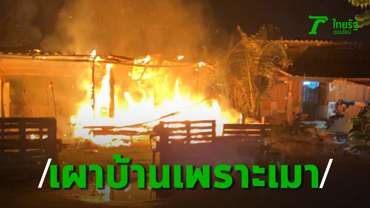 ผัวเมียเมาทั้งคู่ ทะเลาะกันเอาน้ำมันเบนซินราดเผาบ้านวอดทั้งหลัง ต่างคนต่างเผยว่าอีกคนเป็นคนเผา