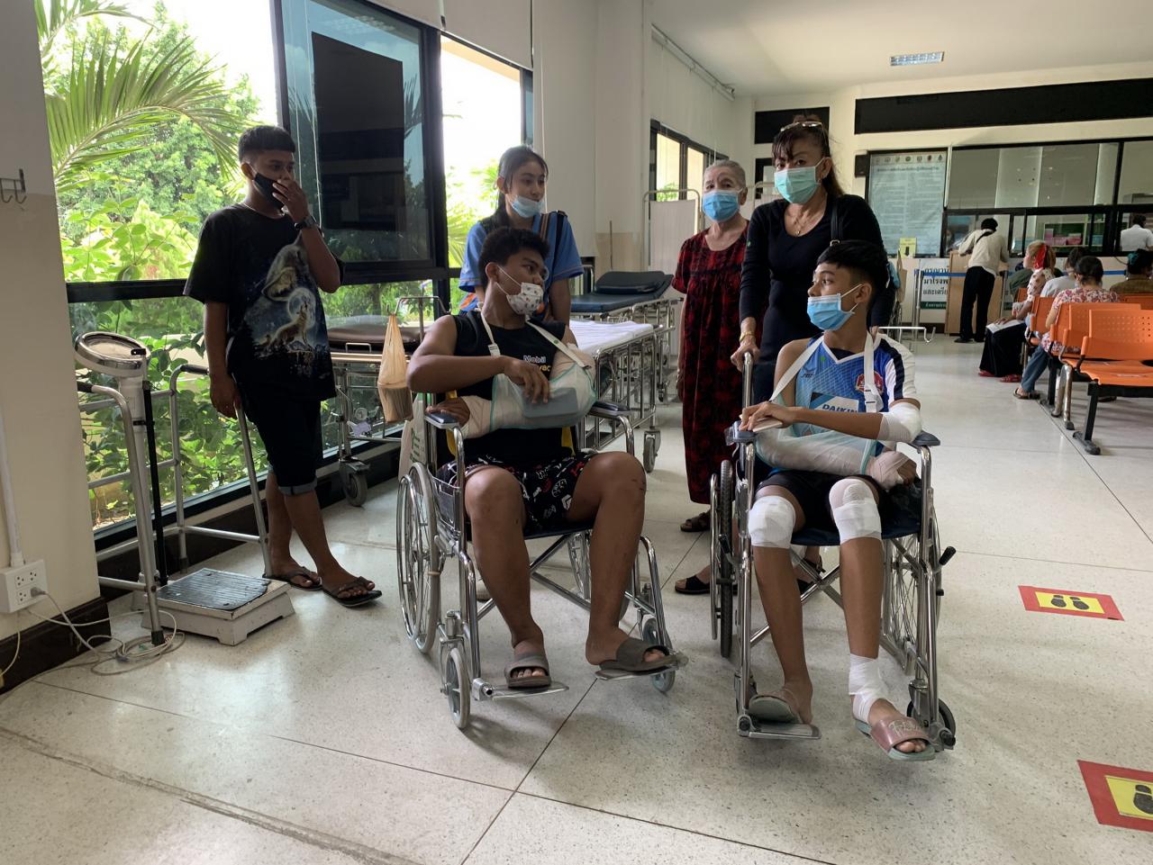 ล่าสุดวันนี้ (10 ส.ค.) พ.ต.อ.วุฒิพงษ์ สมใจ ผกก.สภ.พลูตาหลวง อ.สัตหีบ จ.ชลบุรี ได้เดินทางมาเยี่ยมคนเจ็บที่โรงพยาบาลสัตหีบ กม.10 ต.พลูตาหลวง อ.สัตหีบ จ.ชลบุรี จำนวน 2 ราย คือ ด.ช.นพพร นะวะมะโรจน์ อายุ 14 ปี ได้รับบาดเจ็บแขนขวาหัก ด.ช.สาริน คามสายออ อายุ 15 ปี แขนซ้ายหัก ที่เป็นคนไปช่วย จยย. ที่พังริมถนน ก่อนจะถีบรถเพื่อจะไปส่งบ้าน แต่กลับถูกจ่าทหารเรือชน จนได้รับบาดเจ็บ ส่วนผู้บาดเจ็บอีก 3 ราย ที่ถูกชนด้วยนั้น ยังนอนพักรักษาตัวยัง โรงพยาบาลสมเด็จพระนางสิริกิติ์ กรมแพทย์ทหารเรือ