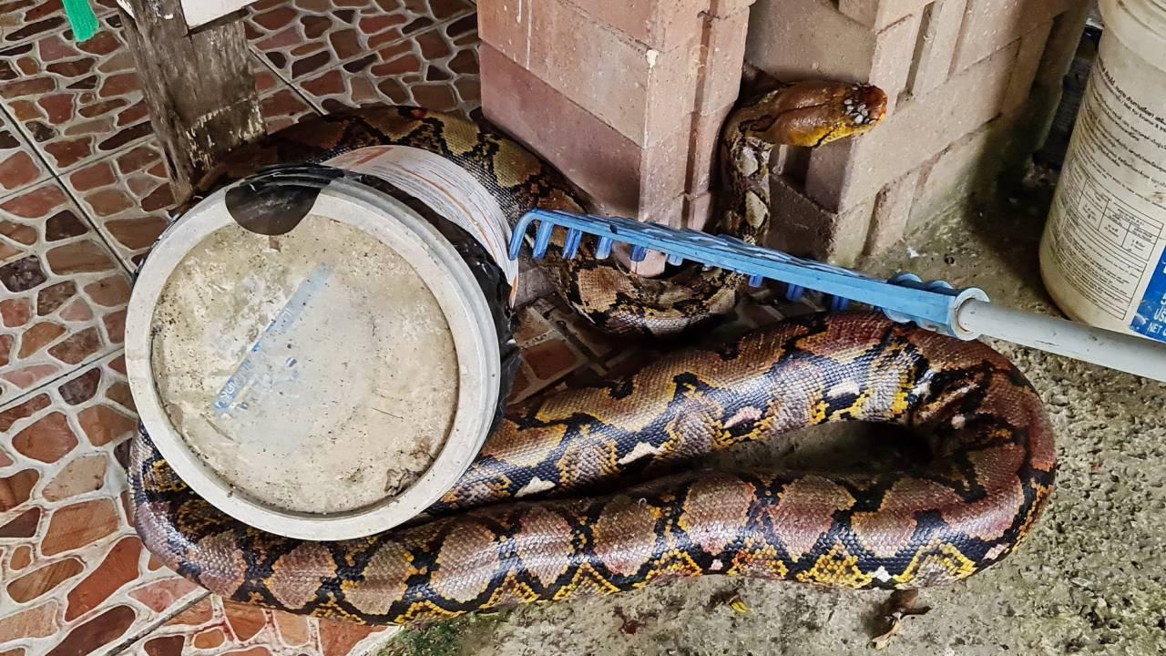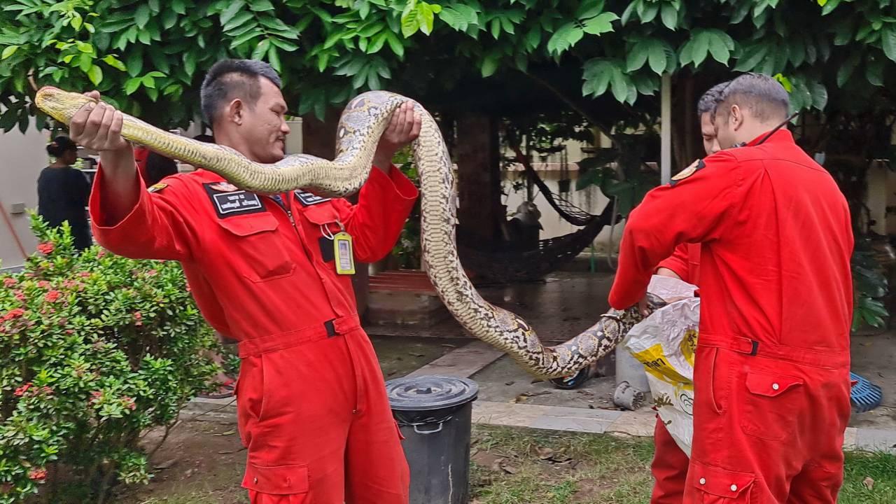 เมื่อวันที่ 18 ก.ย.63 ศูนย์บรรเทาสาธารณภัย เทศบาลตำบลเขตรอุดมศักดิ์ รับแจ้งขอความช่วยเหลือจาก นางเอมอร เพ็ญนภา อายุ 60 ปี พักบ้านเลขที่ 46/1 ซ.อยู่แล้วรวย ม.5 ต.สัตหีบ อ.สัตหีบ จ.ชลบุรี ว่ามีงูเหลือมขนาดใหญ่เลื้อยบุกเข้ามาในบ้าน สร้างความหวาดกลัวให้กับคนในบ้านอย่างมาก ขอให้มาช่วยเหลือโดยด่วน