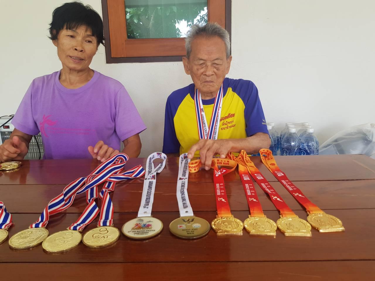 บุตรสาวที่คอยดูแลปู่สว่าง กล่าวต่อว่า ส่วนการลงแข่งขันตามที่มีการแข่งขันก็ส่งคุณพ่อไปวิ่ง เคยไปวิ่งแข่งขันที่ต่างประเทศ 2 ประเทศ คือ ประเทศจีน กับประเทศมาเลเซีย ลงแข่งขันในรุ่นอายุ 90 ขึ้นไป กีฬาวิ่ง ทุ่มน้ำหนัก พุ่งแหลน ขว้างจักร ลงทั้งหมด 4 ประเภท ได้เหรียญทองทุกครั้งที่ลงแข่งขัน