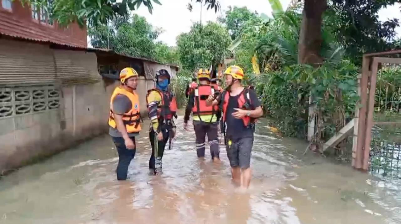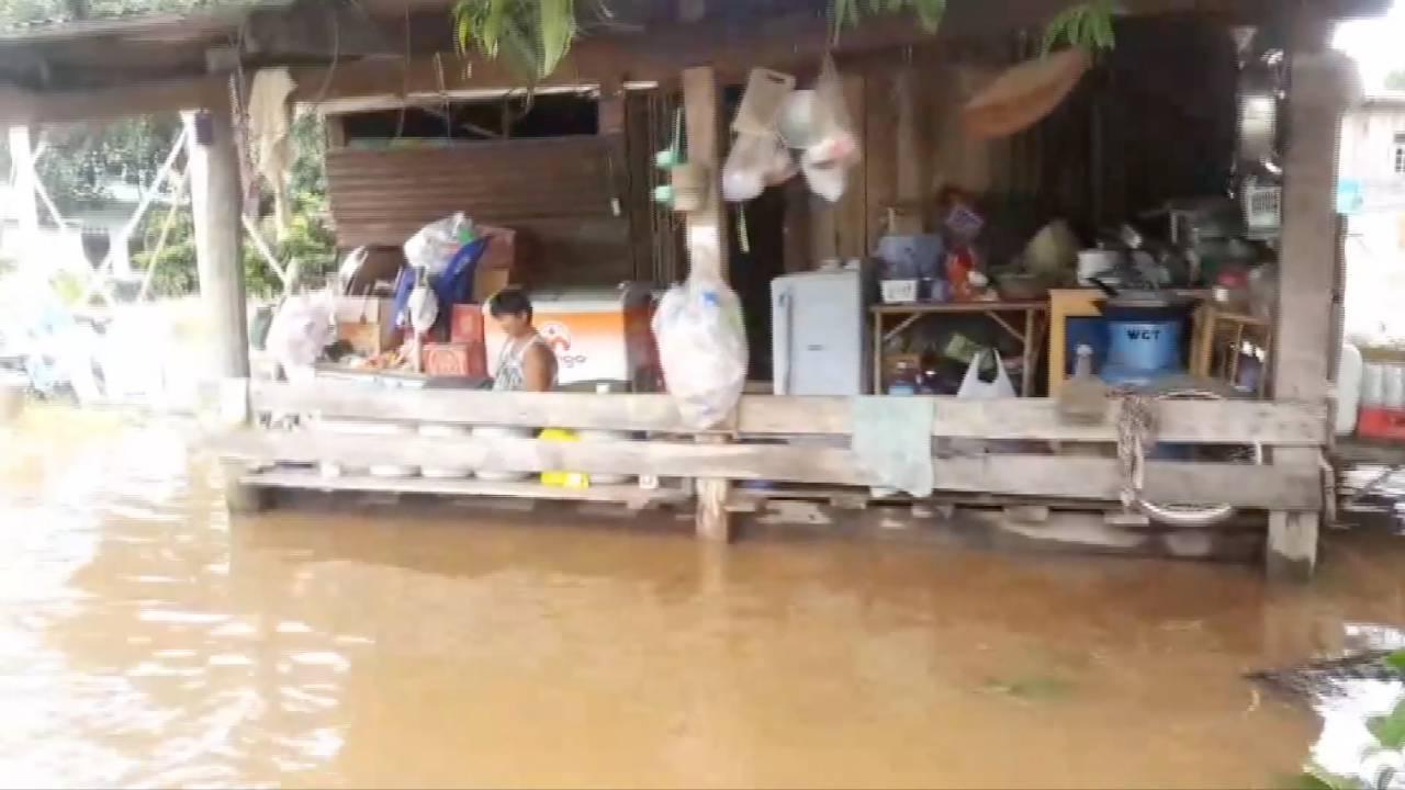 น้ำท่วมปราจีน มวลน้ำจากสระแก้วไหลมาทางแควพระปรง เอ่อล้นตลิ่งเข้าท่วมหมู่บ้านแก่งหมู่ อ.กบินทร์บุรี ชาวบ้าน 150 หลังคาเรือน ถูกตัดขาดจากโลกภายนอก กู้ภัยรุดช่วยเหลือย้ายของขึ้นที่สูงแล้ว