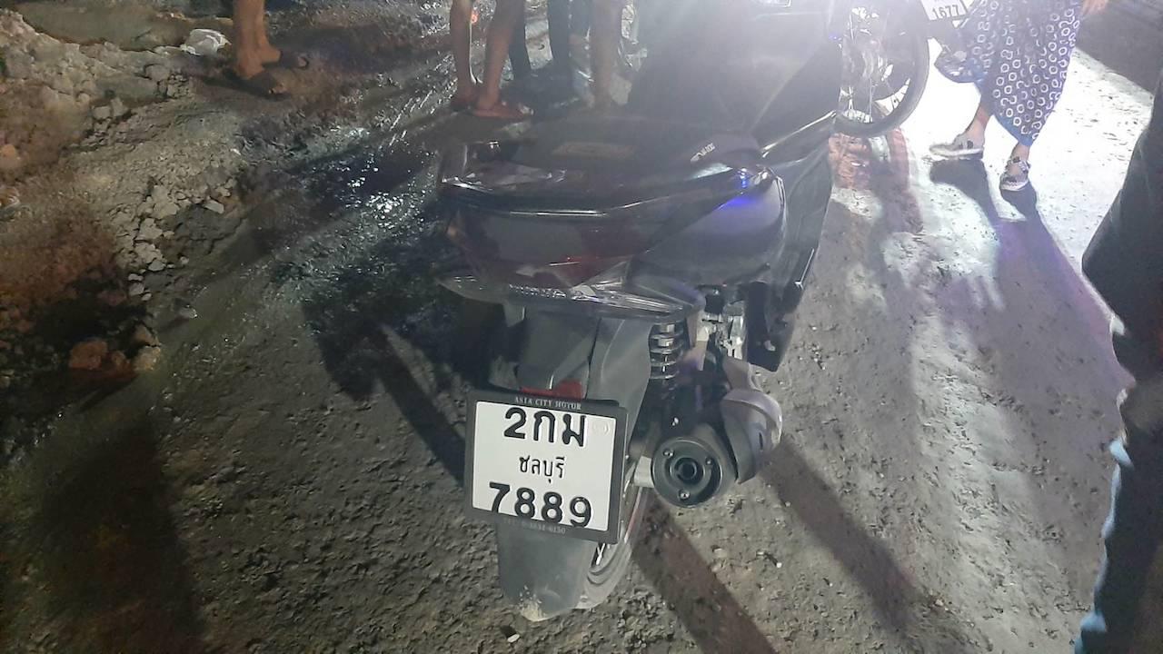 ที่เกิดเหตุพบจักรยานยนต์ ยี่ห้อฮอนด้า รุ่น PCX สีดำ ทะเบียน 1กม7889 ชลบุรี ใกล้กันพบศพนายคุณานนท์ แจ่มจำรัส อายุ 16 ปี สวมชุดนักศึกษาเทคโนโลยีชลบุรี นอนเสียชีวิต สภาพศีรษะแตกเต็มพื้นถนน นอกจากนี้ยังพบคนเจ็บเล็กน้อยอีก 1 คน ทราบชื่อคือนายธนเกียรติ์ แก้วมี อายุ 16 ปี ซึ่งเป็นเพื่อนผู้ตาย ได้รับบาดเจ็บเล็กน้อยบริเวณข้อมือขวา เจ้าหน้าที่กู้ภัยรีบปฐมพยาบาล ส่วนรถคู่กรณีเป็นรถบรรทุก 6 ล้อ ยี่ห้อโตโยต้า สีน้ำเงิน ทะเบียน 81-4342 หนองบัวลำภูจอดห่างไปราว 20 เมตร โดยมีนายธีรภัทร ขุนปาดง อายุ 36 ปี เป็นคนขับยืนรอมอบตัวกับเจ้าหน้าที่ตำรวจ
