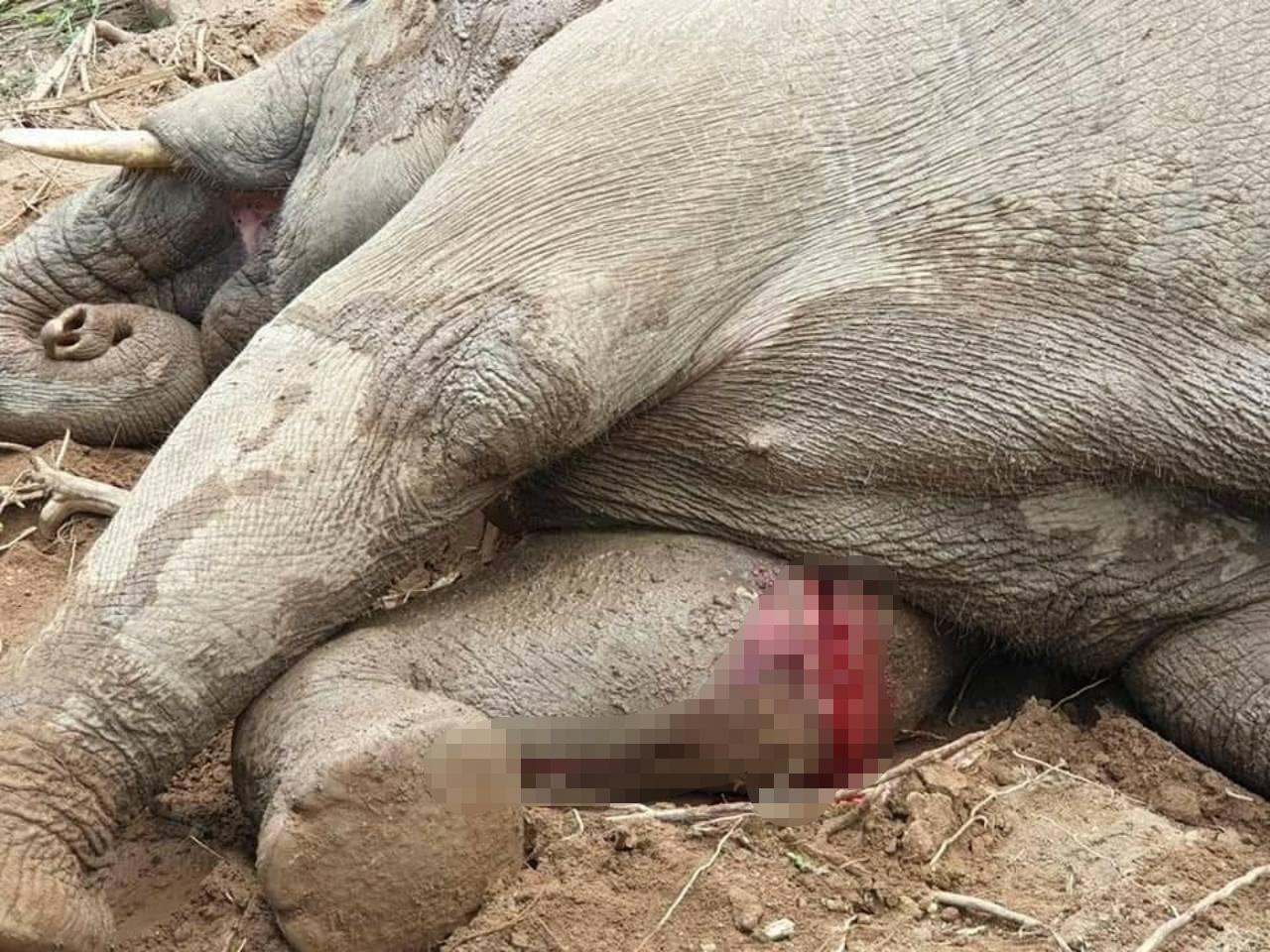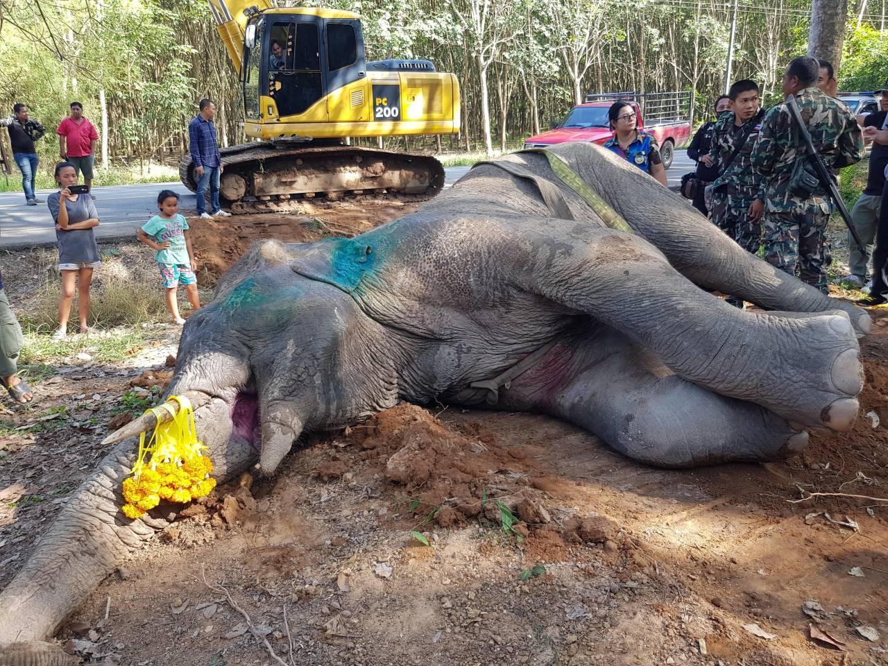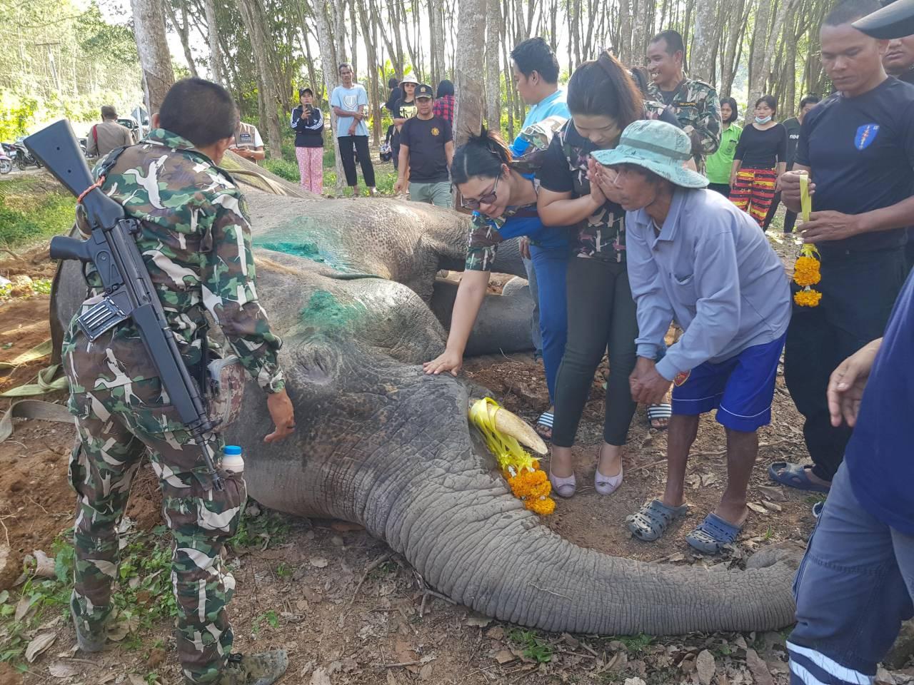 น.ส.ณฐนน ปานเพ็ชร นายสัตวแพทย์ปฏิบัติ กรมอุทยานแห่งชาติ สัตว์ป่า และพันธุ์พืช ได้กล่าวว่า สำหรับช้างตัวดังกล่าวมีบาดแผลตรงขาหน้าด้านขวา ซึ่งได้มีการผ่าแผลออก แต่เนื่องจากบาดแผลมีความกว้าง จึงเกิดอาการเน่าเปื่อย และเกิดภาวะติดเชื้อในกระแสเลือดเฉียบพลัน จึงล้มลงในเวลาประมาณ 13.00 น. ส่วนสาเหตุเกิดจากกรณีที่ช้างตัวนี้มีบาดแผลที่ขาหน้าขวา ซึ่งเกิดจากกระสุนปืน และมีอาการเน่าจนบวมเป่งตั้งแต่ครั้งแรกที่พบ นอกจากนี้ยังพบโลหะในตัว คาดว่าเป็นกระสุนฝังในทั่วทั้งตัว ซึ่งจะเตรียมผ่าพิสูจน์หาสาเหตุต่อไป