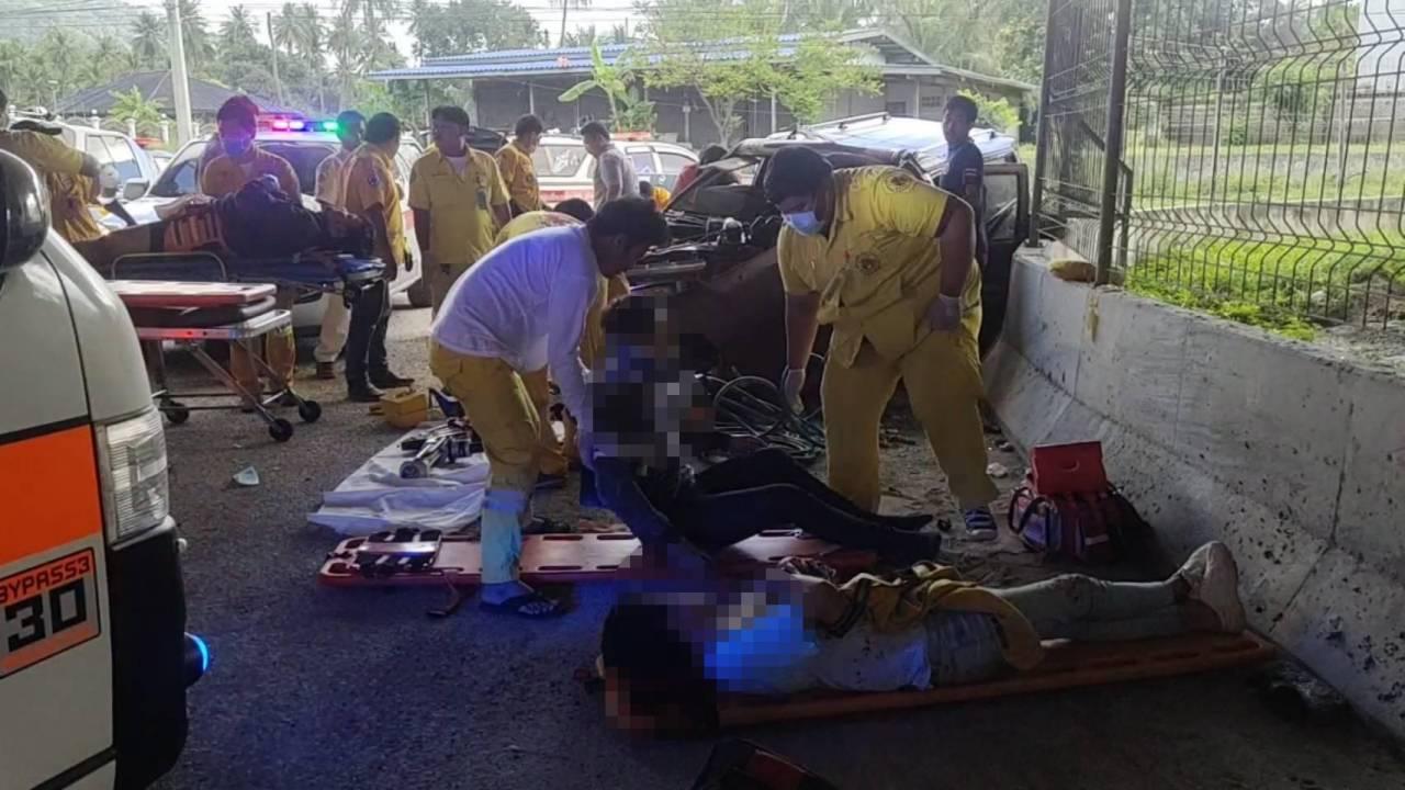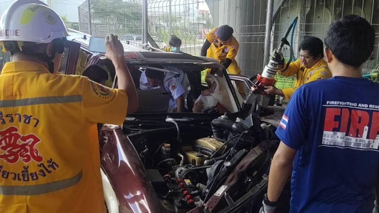 ที่เกิดเหตุเป็นจุดกลับรถใต้ถนนมอเตอร์เวย์ พบรถกระบะ ยี่ห้อ อีซูซุ สีเลือดหมู หมายเลขทะเบียน นข-321 สิงห์บุรี อยู่ในสภาพพังเสียหายยับเยิน ข้างรถฝั่งผู้โดยสาร พุ่งชนอัดติดกับแท่งแบริเออร์ ยางแตก ห้องเครื่องยุบ ตัวรถยุบลงมากดทับคนภายในรถ ตรวจสอบพบผู้ได้รีบบบาดเจ็บรวม 5 ราย ทราบชื่อคือนายสิริภัทร์ ชำนาญรักษา อายุ 25 ปี ผู้ขับขี่ และ น.ส.พิชญาภา โสภาสุข อายุ 23 ปี นั่งโดยสารหน้ารถ ทั้งคู่ได้รับบาดเจ็บจากการกระแทก ถูกคอนโซลรถกดทับ และมีบาดแผลถลอกตามร่างกาย เจ้าหน้าที่จึงได้ทำการใช้อุปกรณ์ตัดถ่างเข้างัดประตูรถ ก่อนนำตัวออกมาได้
