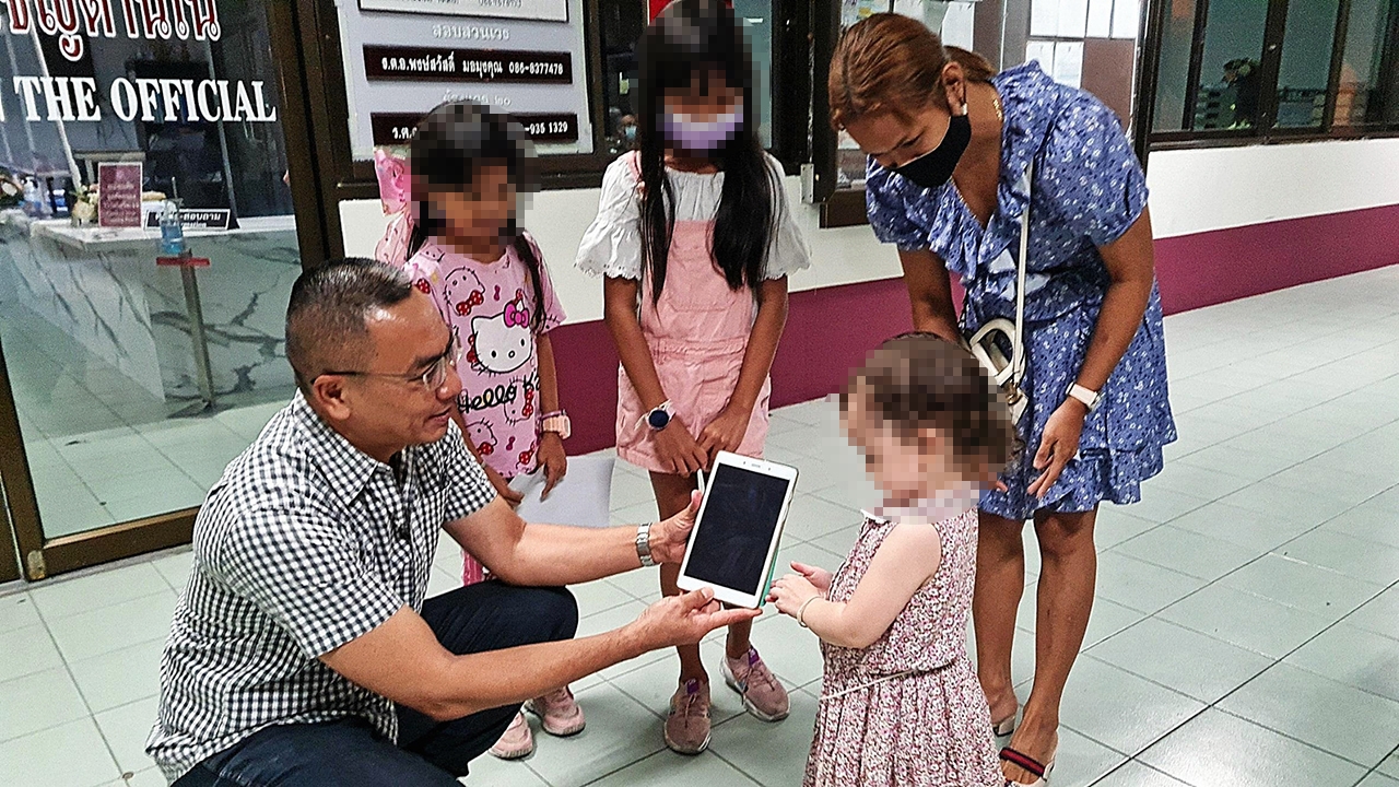 ตำรวจนำแท็บเล็ตมาคืนให้หนูน้อย วัย 2 ขวบที่ สภ.จอมเทียน หลังนายพัฒนะเกียรติ ใจดี ผู้ต้องหาขโมยไปจากห้องพักลูกค้าในปั๊มน้ำมัน เชลล์ ริมถนนสุขุมวิท ต.นาจอมเทียน อ.สัตหีบ จ.ชลบุรี ขณะแม่ขับรถไปล้างแล้วเด็กเล่นแท็บเล็ตแล้วลืมไว้ในห้อง สารภาพว่าเห็นแท็บเล็ตวางอยู่ที่โต๊ะ ไม่มีใครเห็น อยากได้ไว้เป็นของตัวเอง.
