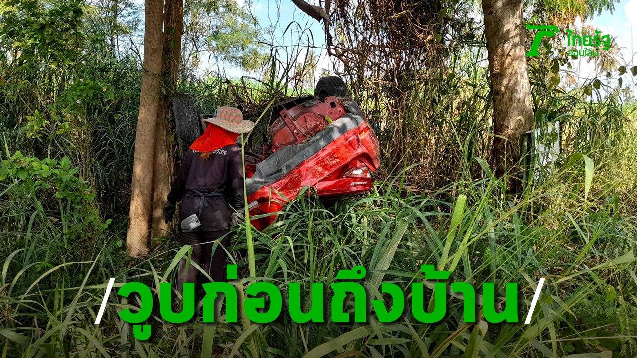 หนุ่มโรงงานที่ชลบุรีป่วย หัวหน้างานให้กลับบ้าน ขากลับขับเก๋งเสียหลักพุ่งอัดตอไม้ริมถนน ก่อนพุ่งเข้าป่าพลิกคว่ำเหวี่ยงร่างกระเด็นออกนอกรถ อาการสาหัส สุดท้ายเสียชีวิตขณะนำส่งโรงพยาบาล
