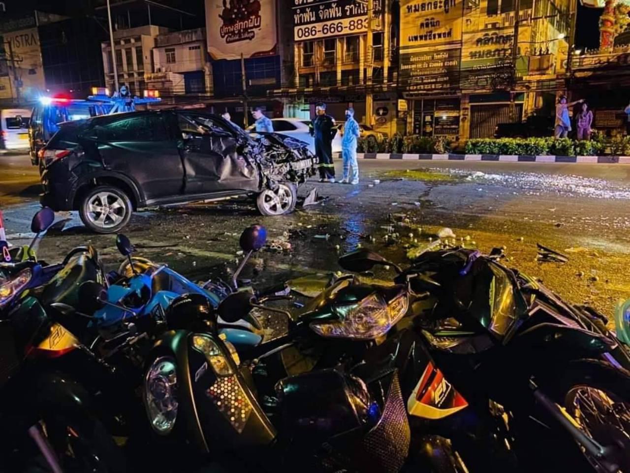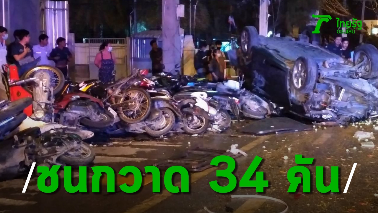 ชนวินาศสันตะโรกลางเมืองระยอง วัยรุ่นขับเอชอาร์วีพุ่งชนท้ายรถกระบะแฉลบชนรถจักรยานยนต์จอดอยู่ริมทางหน้า รพ.ระยอง กวาดเรียบ 34 คัน ล้มพังระเนระนาด ตร.แจ้งข้อหาขับรถประมาท