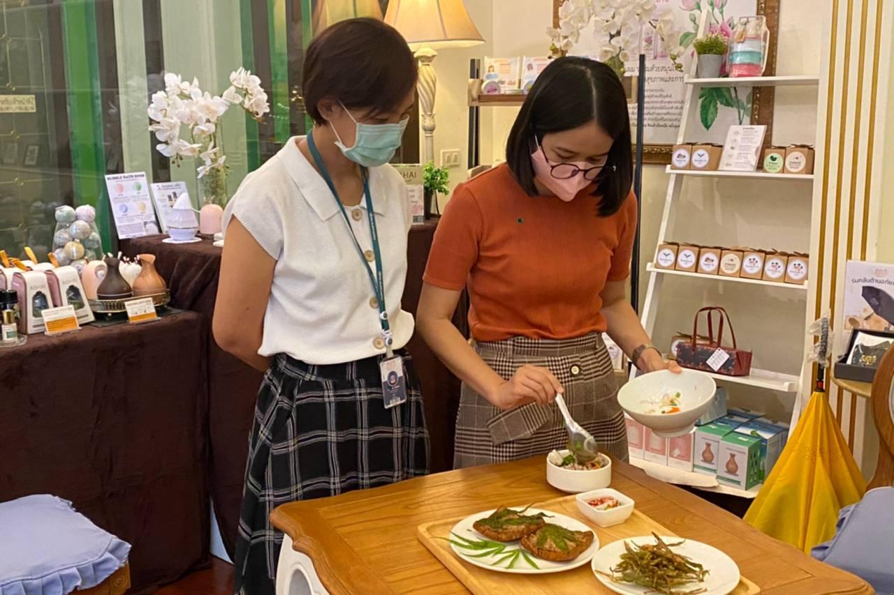 ดร.ภญ.ผกากรอง ขวัญข้าว หัวหน้าศูนย์หลักฐานเชิงประจักษ์ด้านการแพทย์แผนไทยและสมุนไพร โรงพยาบาลเจ้าพระยาอภัยภูเบศร กล่าวว่า เมนูอาหาร อย่างแรกเป็นขนมปังหน้าหมูใส่ใบกัญชา และอีกเมนูก็เป็นยำ ส่วนมากก็เป็นผักทั่วๆ ไปก็เปลี่ยนมาเป็นใบกัญชาแทน ชุบแป้งทอด ก็เหมือนผักทั่วไป ส่วนรสชาติก็เหมือนผักปกติ สิ่งที่โรงพยาบาลทำก็เพิ่มมูลค่าของสารอาหาร แทนที่จะใส่ผักธรรมดา ก็เปลี่ยนผักส่วนหนึ่งมาเป็นกัญชา สิ่งที่เราพยายามทำนอกเหนือจากการที่พยายามเอามาพัฒนาตำรับอาหารเหล่านี้ เราก็ให้ความรู้ไปด้วย