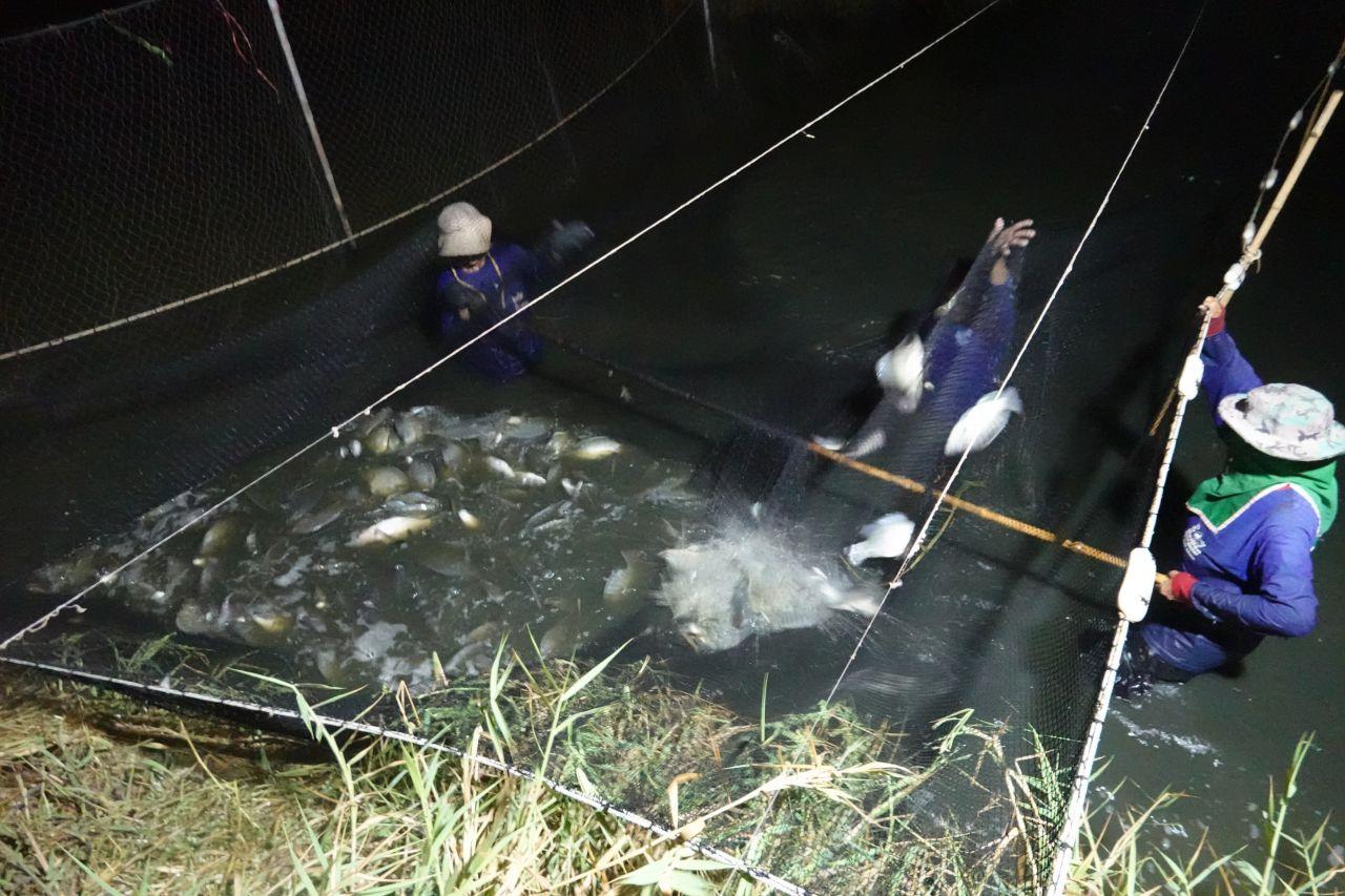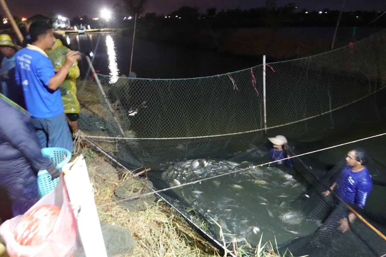 เมื่อวันที่ 9 ก.พ. 64 ที่บ่อปลาสลิดของ นายเอกพันธ์ ภักดีหุ่น อายุ 37 ปี เกษตรกรผู้เลี้ยงปลานิล หมู่ 16 ต.บางปะกง อ.บางปะกง จ.ฉะเชิงเทรา ได้เร่งนำคนงานและญาติมาช่วยกันจับปลานิลที่เลี้ยงไว้ในบ่อปลาสลิด หลังสภาพอากาศที่เริ่มแปรปรวน และกลัวว่าพอเริ่มเข้าหน้าแล้ง จะไม่มีน้ำที่จะเติมเข้าบ่อปลา เพื่อหมุนเวียนน้ำเพิ่มออกซิเจนภายในบ่อ อีกทั้งน้ำในคลองนั้นถูกน้ำทะเลหนุน จนไม่สามารถสูบน้ำเข้ามาใช้ได้ ส่งผลให้น้ำเริ่มเน่าเสีย และเริ่มมีภาวะน้ำตาย หากปล่อยเลี้ยงต่อก็จะทำให้ขาดทุน จึงตัดสินใจลากปลาทันที เพื่อจะขายปลานิลที่เหลืออยู่ อย่างไรก็ตาม แม้คิดจะจับขายให้หมด แต่ก็ไม่สามารถเอาขึ้นหมดบ่อได้ เนื่องจากแพปลานั้นรับปลาจำนวนจำกัด