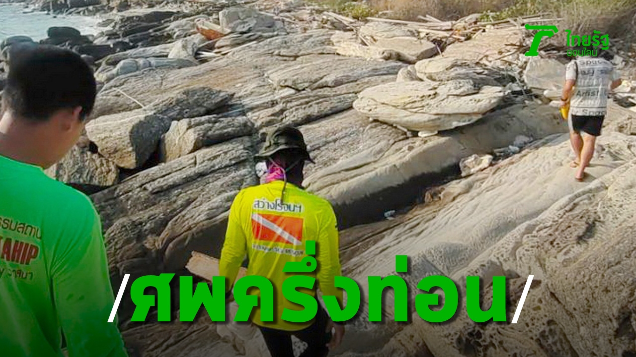 พบศพครึ่งท่อนล่าง ลอยติดโขดหินเกาะกลึงบาดาล จ.ชลบุรี สภาพขึ้นอืด-ส่งกลิ่นเหม็นคลุ้ง ตรวจสอบเบื้องต้นไม่พบเอกสารติดตัว คาดตายมาแล้ว 2-3 อาทิตย์ จนท.ส่งชันสูตร รพ.ตำรวจ เพื่อหาสาเหตุ-ติดตามญาติผู้ตาย