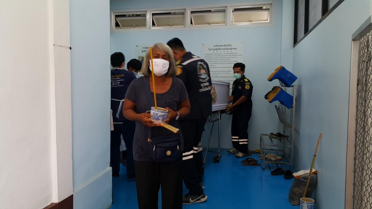 ญาติๆ เดินทางมาขอรับศพ เจ้าหน้าที่ รปภ.โรงงานที่ถูกช้างป่าเขาชะเมาทำร้ายบาดเจ็บและเสียชีวิตในเวลาต่อมาด้วยความโศกเศร้า ภรรยาเผย ต้องเลี้ยงลูกวัย 7 ขวบตามลำพังหลังสูญเสียสามีไป