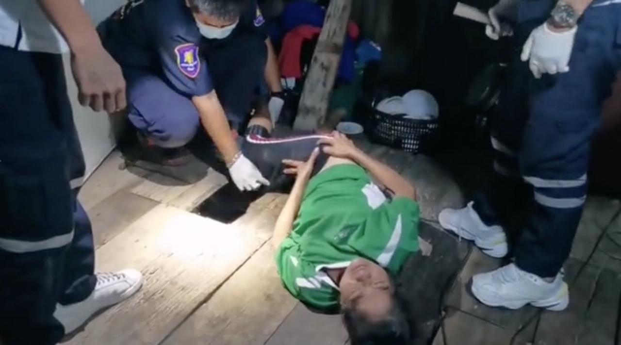 ทีมกู้ภัยฯพัทยาเข้าช่วยป้าวัย 51 ปี ขาติดร่องไม้กระดานนานหลายชั่วโมง หลังปูที่นอนแล้วขาหลุดไปในร่อง ลุกขึ้นเองไม่ได้ จนโดนไม้หนีบขาปวดบวม ร้องให้คนช่วย จนท.ต้องงัดไม้ออก ก่อนยกตัวนำส่งโรงพยาบาล