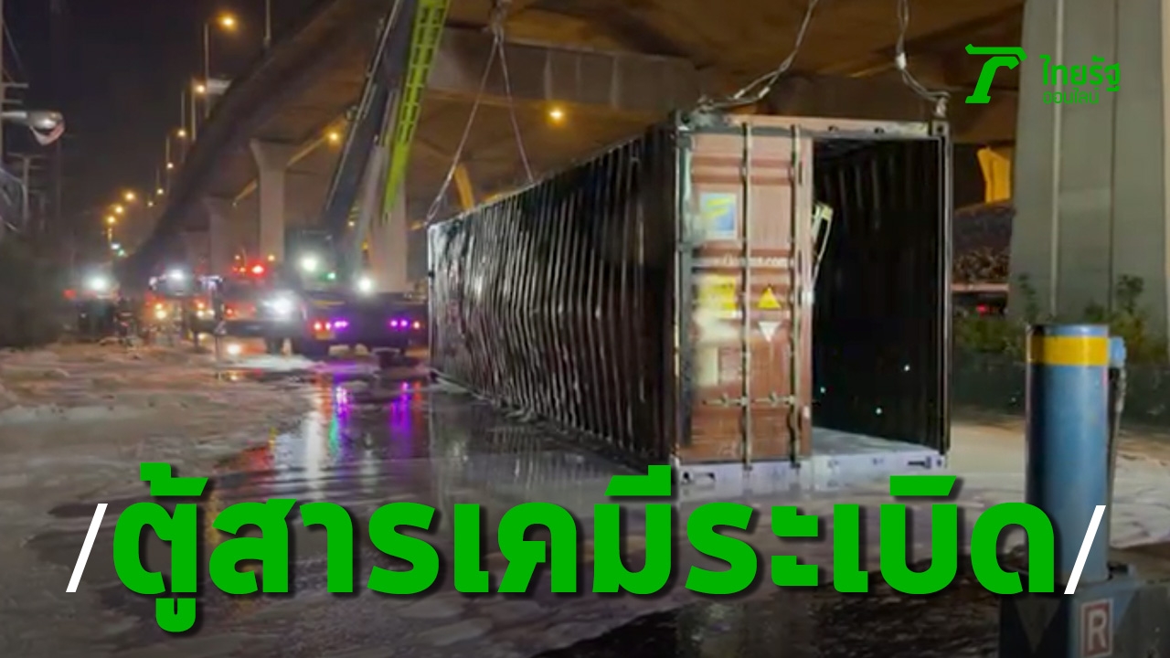 รถตู้บรรทุกคอนเทนเนอร์เสียหลักพลิกตะแคง ทำให้ตู้พลิกทับเสาไฟฟ้า และสายไฟฟ้าขาด เมื่อเอาสลิงดึงตู้ขึ้นเกิดไฟฟ้าช็อตลุกไหม้หญ้าข้างทาง ดับเพลิงฉีดน้ำสกัดไปโดนสารเคมีจนเกิดระเบิด เจ็บหลายราย