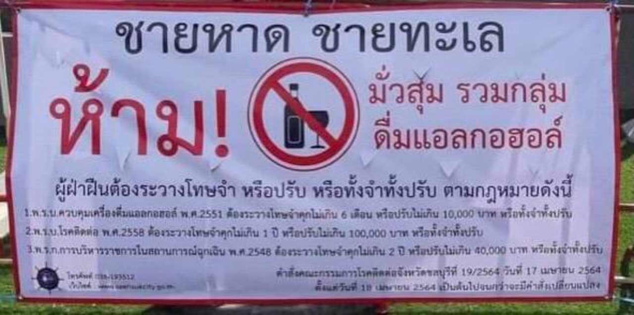 "ขอย้ำ จังหวัดชลบุรี มีการจับจริง หากมีการฝ่าฝืนจับกลุ่มดื่มเครื่องดื่มแอลกอฮอล์ในพื้นที่สาธารณะ ร้านอาหาร ทั้งนี้เพื่อเป็นการคุมเข้มป้องกันการระบาดของไวรัสโควิด-19".