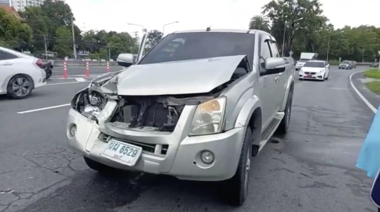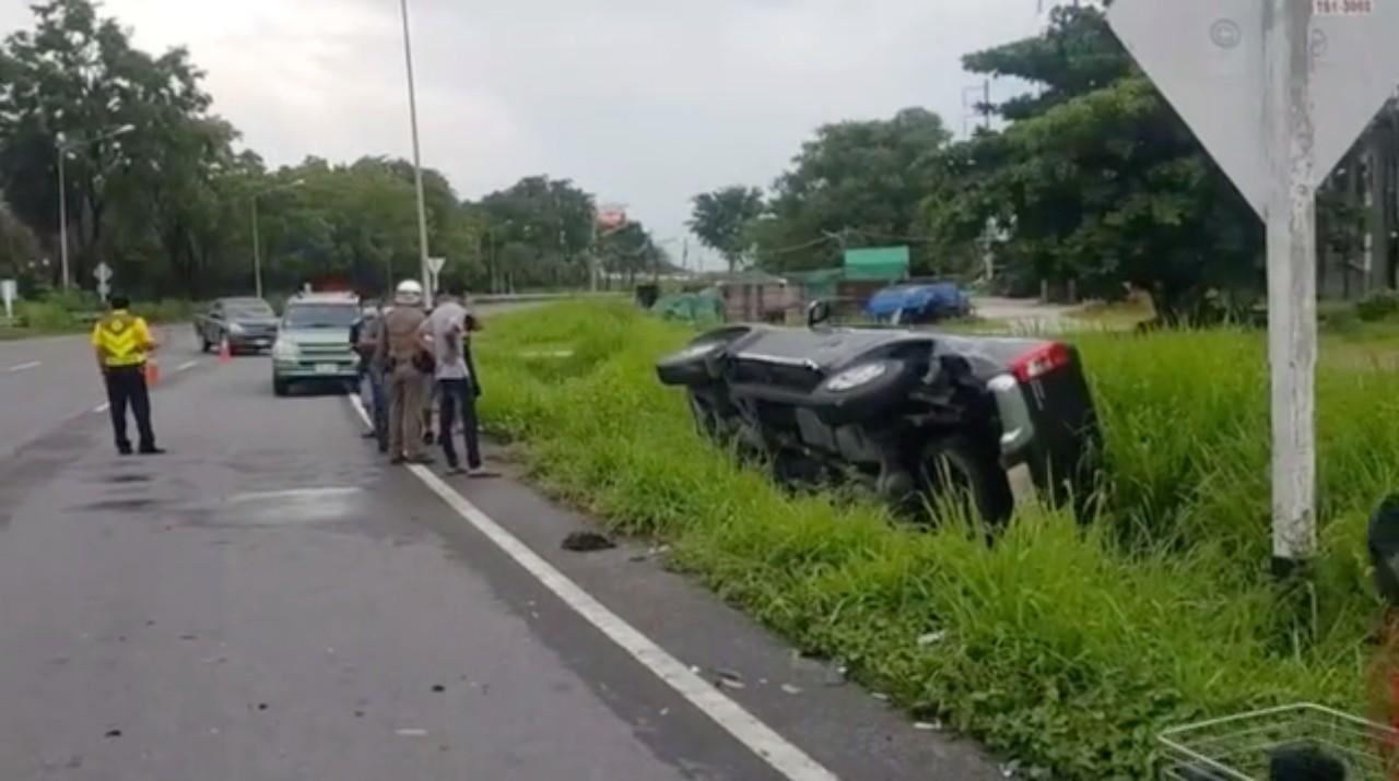 เมื่อวันที่ 18 พ.ค.64 เกิดเหตุรถกระบะพุ่งข้ามเกาะกลางถนนสุขุมวิท ขาเข้าบางแสน ตัดถนนบายพาสเลี่ยงเมืองชลบุรี หมู่ 1 ต.ห้วยกะปิ อ.เมือง จ.ชลบุรี ก่อนพุ่งตัดหน้ารถกระบะที่วิ่งมาปกติจากถนนบายพาสเลี่ยงเมือง ทำให้โดนชน รถกระเด็นตกข้างถนน พลิกตะแคงข้างทาง ต่อมา เจ้าหน้าที่ตำรวจ สภ.เสม็ด และกู้ภัยมูลนิธิธรรมรัศมีมณีรัตน์ ได้มาตรวจสอบพบรถกระบะยี่ห้อ อีซูซุ ดีแมคซ์ สีดำ ทะเบียน ผย 8420 ชลบุรี พลิกตะแคงอยู่ร่องน้ำริมถนน สภาพด้านข้างซ้ายพังยับ และมีรถกระบะยี่ห้อ อีซูซุ ดีแมคซ์ สีเทา ทะเบียน ผผ 6529 ชลบุรี สภาพด้านหน้าพังยับเยิน โดยพบ นายคัมภีร์ โพธิ์ศรี อายุ 39 ปี คนขับรถกระบะ และนายเอ (นามสมมุติ) เพื่อนที่มากับรถกระบะสีดำ ไม่ได้รับบาดเจ็บใดๆ