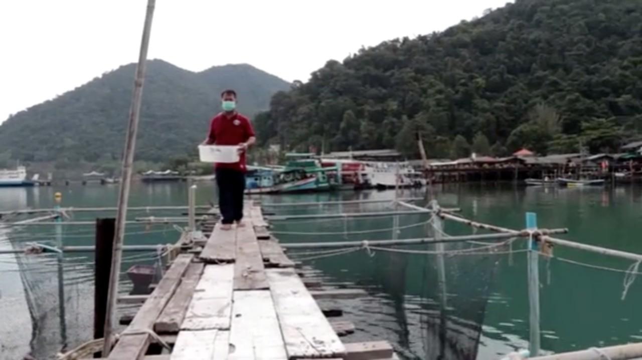 ประธานประชาคมหมู่บ้านคลองสน กล่าวต่อว่า สำหรับการเลี้ยงปลากะรังจุดฟ้า หรือ ปลาย่ำสวาท ต้องนำเหยื่อเป็นลูกปลาตัวเล็กมาให้ 2 วันต่อครั้ง ถึงเวลาอาหารปลาก็จะกรูกันเข้ามา เหมือนปลาคาร์ปที่เลี้ยงสวยงาม แต่อันนี้เลี้ยงแล้วเพลิดเพลินดี
