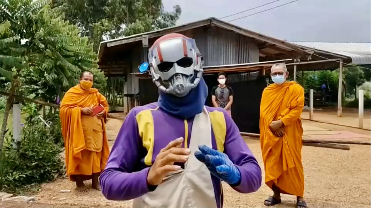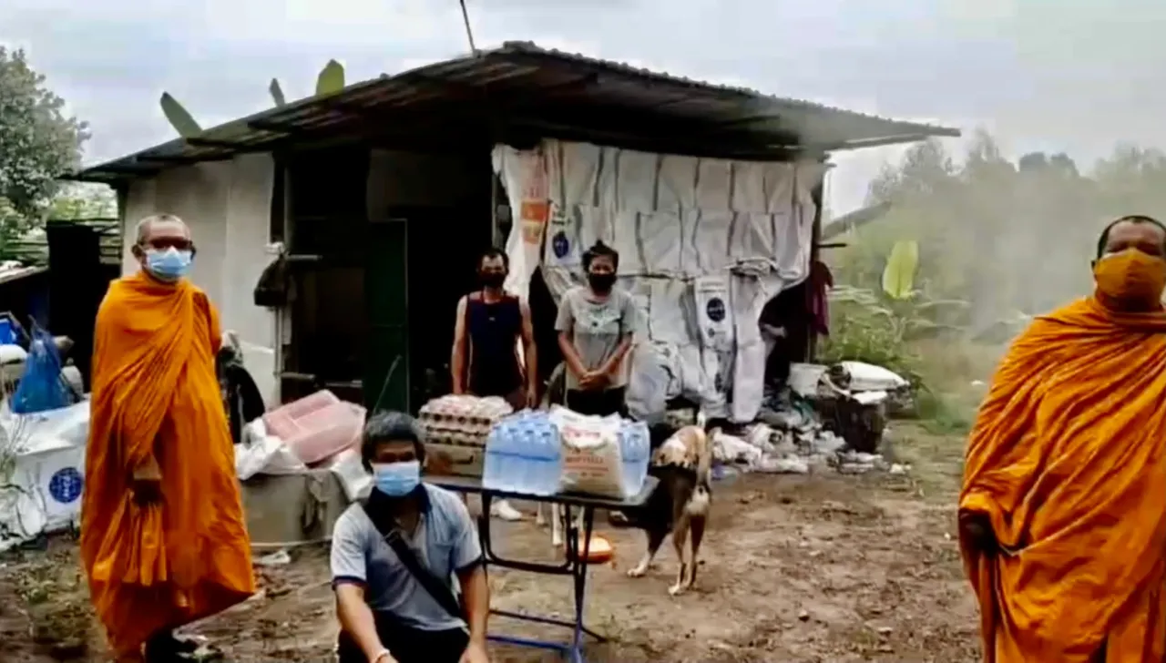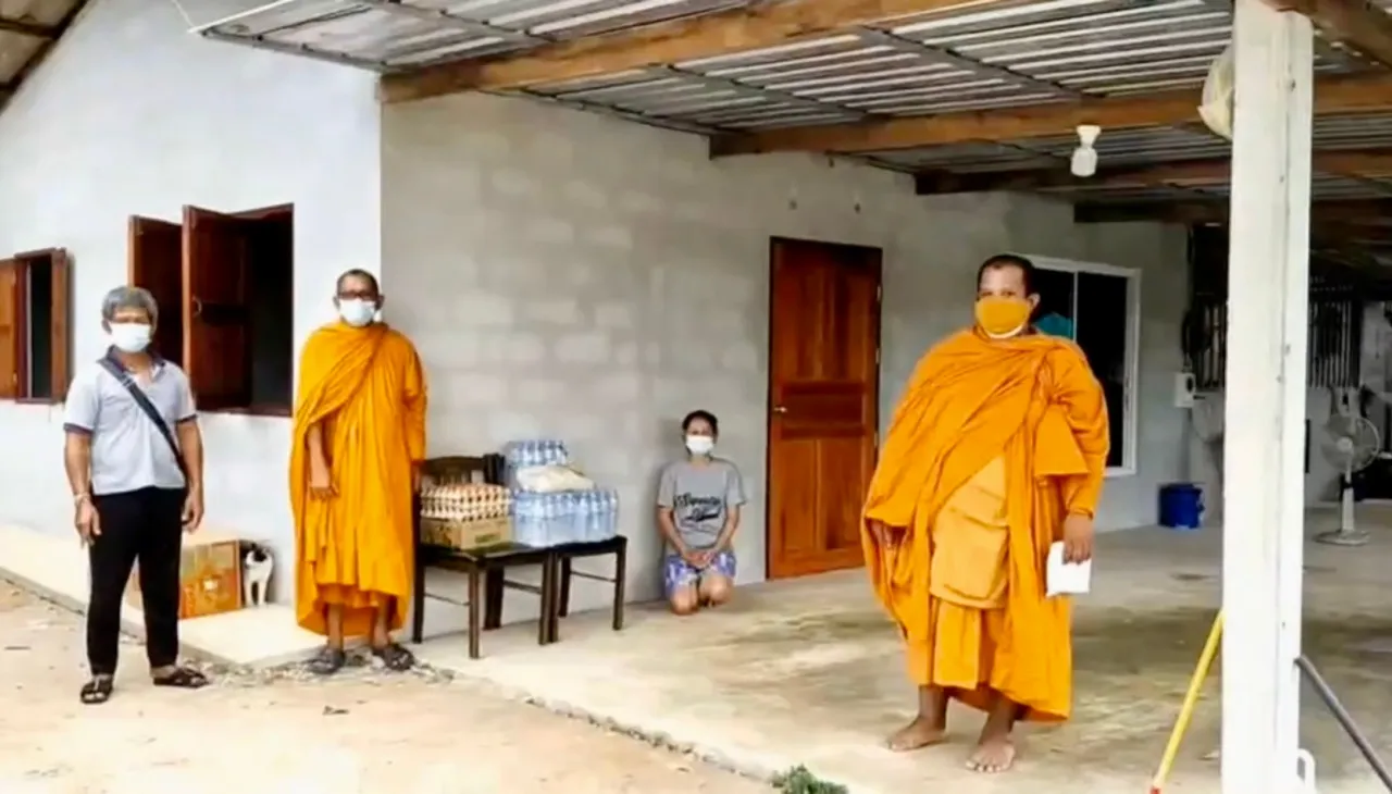 แอนท์แมนแอนด์เดอะมังค์ ฮีโร่กับเจ้าอาวาสวัดท่าไม้แดง นำอาหารแห้งแจกจ่ายช่วยชาวบ้าน อ.เขาหินซ้อน ที่เดือดร้อนต้องกักตัวจากคลัสเตอร์โรงงานชำแหละไก่ เผยมีเงินก็ไปซื้อไม่ได้ ร้านไม่ขายถูกรังเกียจ
