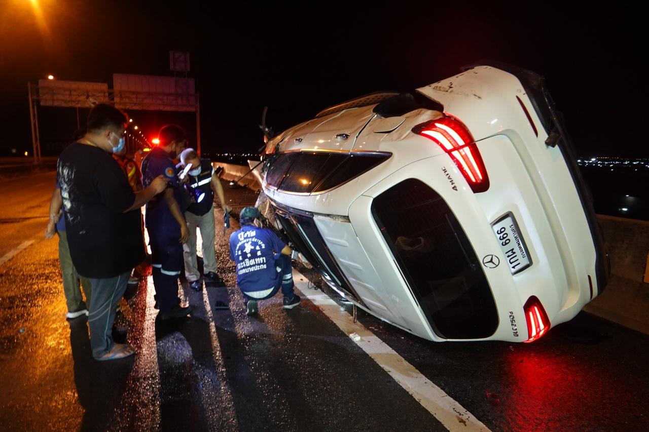 เจ้าของธุรกิจอสังหาริมทรัพย์ชื่อดังในเมืองพัทยาประสบอุบัติเหตุรถเบนซ์ลื่นน้ำฝนบนทางด่วนบูรพาวิถี เสียหลักชนขอบทาง ร่างกระเด็นออกมา อาการสาหัส ส่วนเพื่อนเสียชีวิต