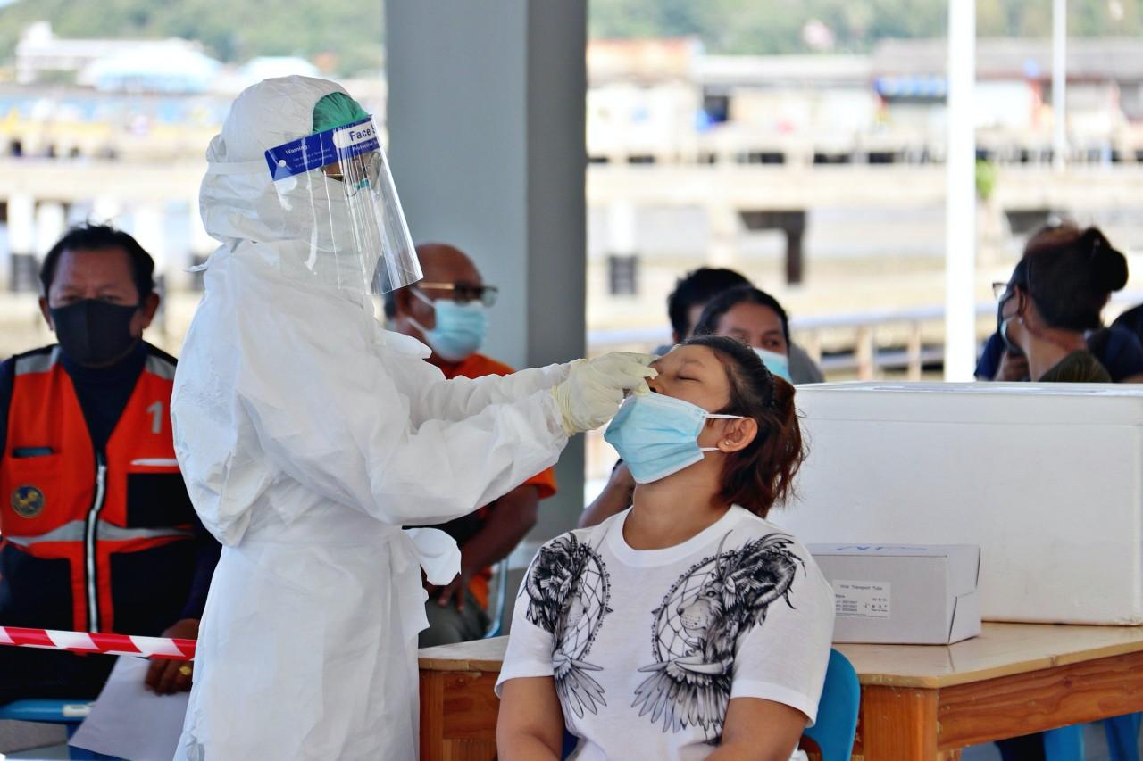 เมื่อวันที่ 24 มิ.ย.64 ที่ศาลาอเนกประสงค์ หน้าที่ว่าการอำเภอสัตหีบ จ.ชลบุรี สาธารณสุขอำเภอสัตหีบ ร่วมกับ รพ.สัตหีบ กม.10 และเทศบาลเมืองสัตหีบ ดำเนินการตรวจหาเชื้อโควิด-19 แบบเชิงรุก โดยกลุ่มเป้าหมายหลัก เป็นพ่อค้า แม่ค้า ลูกจ้างที่ประกอบอาชีพอยู่ในบริเวณ และผู้ที่อยู่ในกลุ่มเสี่ยงโดยมีการตรวจหาเชื้อทั้งสิ้นจำนวน 600 คน มี พ.ต.อ.ปัญญา ดำเล็ก ผกก.สภ.สัตหีบ มาอำนวยความสะดวกพร้อมประชาสัมพันธ์ ให้ประชาชนผู้ที่มีความเสี่ยงออกมาตรวจหาเชื้อโควิดกันให้มากที่สุด
