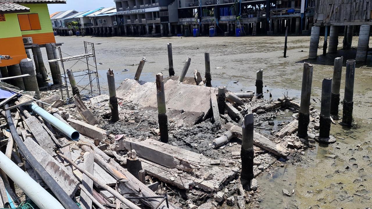 เมื่อวันที่ 25 มิ.ย.64 นายกิตติพงษ์ กิติคุณ นายอำเภอสัตหีบ พร้อมด้วย พ.ต.อ.ปัญญา ดำเล็ก ผกก.สภ.สัตหีบ และกำลังเจ้าหน้าที่หน่วยกู้ภัยมูลนิธิสว่างโรจนธรรมสถาน ได้ลงพื้นที่ตรวจสอบเหตุ สะพานถล่มมีผู้ได้รับบาดเจ็บ 2 ราย บริเวณชุมชนชายทะเล ม.4 ต.บางเสร่ อ.สัตหีบ จ.ชลบุรี ที่เกิดเหตุเป็นสะพานปูน มีสภาพเก่าทรุดโทรม กำลังอยู่ในระหว่างการซ่อมแซมรื้อถอน ถล่มจนพังพินาศ ลงมากองอยู่บนพื้นทรายทะเล