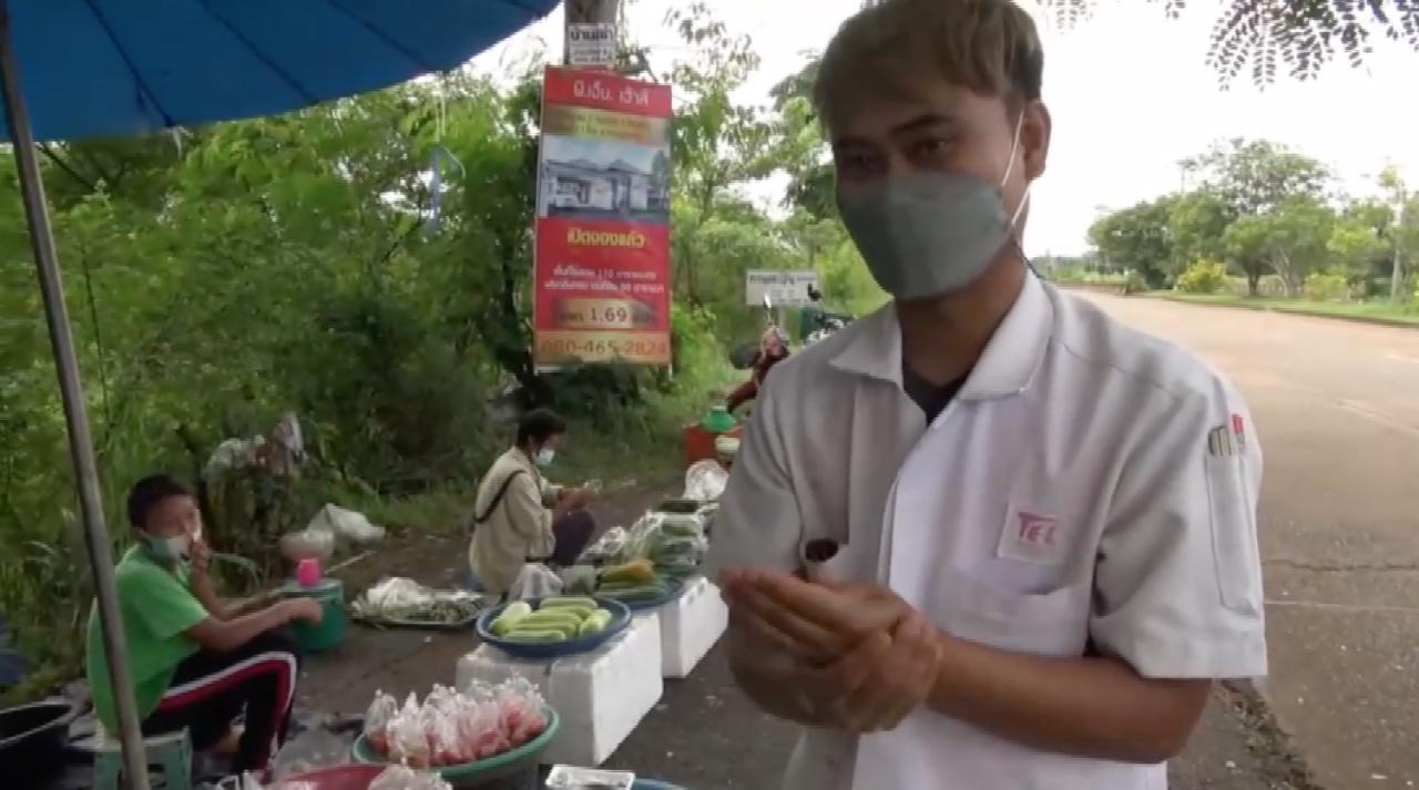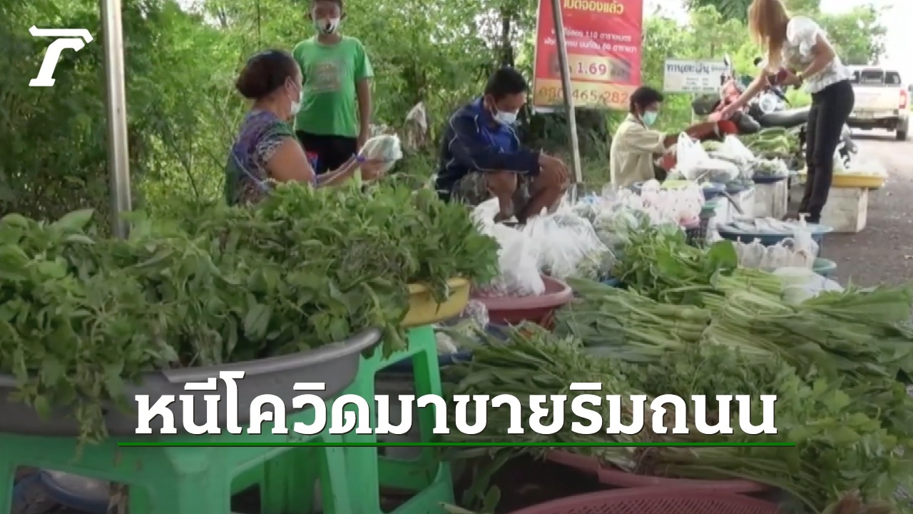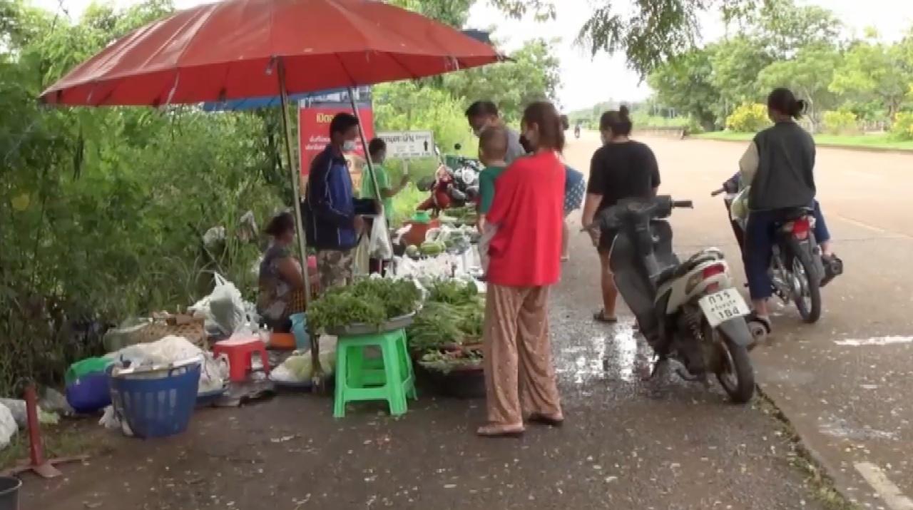 แม่ค้าขายผักปราจีนบุรี หนีโควิดในตลาดเขตเทศบาลกบินทร์บุรี มาขายริมถนนสายสุวรรณศรสายเก่า ชี้อากาศถ่ายเท และไม่ต้องเบียดเสียดกับใคร แค่ต้องทนฟ้าทนฝน ด้านลูกค้าบอกสะดวก ไม่แออัด