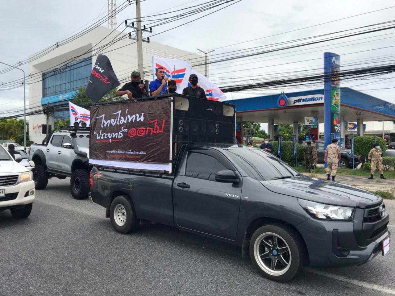 เมื่อเวลา 13.00 น. วันที่ 15 สิงหาคม กลุ่มไทยไม่ทน "ประยุทธ์" ออกไป มีการรวมตัวทั้งรถยนต์และรถจักรยานยนต์ ประมาณ 100 คัน ที่บริเวณถนนอ่างศิลา-สุขุมวิท หน้าปั๊มน้ำมัน ปตท.อ่างศิลา อ.เมือง จ.ชลบุรี โดยมี พ.ต.อ.ชนะไชย เกษมวงศ์ ผกก.สภ.เสม็ด พร้อมด้วยกำลังตำรวจมารักษาความปลอดภัย พร้อมทั้งชี้แจงว่า จ.ชลบุรี เป็นพื้นที่ควบคุมสูงสุด เนื่องจากมีการแพร่ระบาดไวรัสโควิด-19 และห้ามมีการชุมนุมเกิน 5 คน พร้อมทั้งระบุโทษการชุมนุม เพื่อป้องกันการแพร่ระบาดไวรัสโควิด-19 หากมีการฝ่าฝืนจะถูกลงโทษจำคุกไม่เกิน 2 ปี ปรับไม่เกิน 40,000 บาท