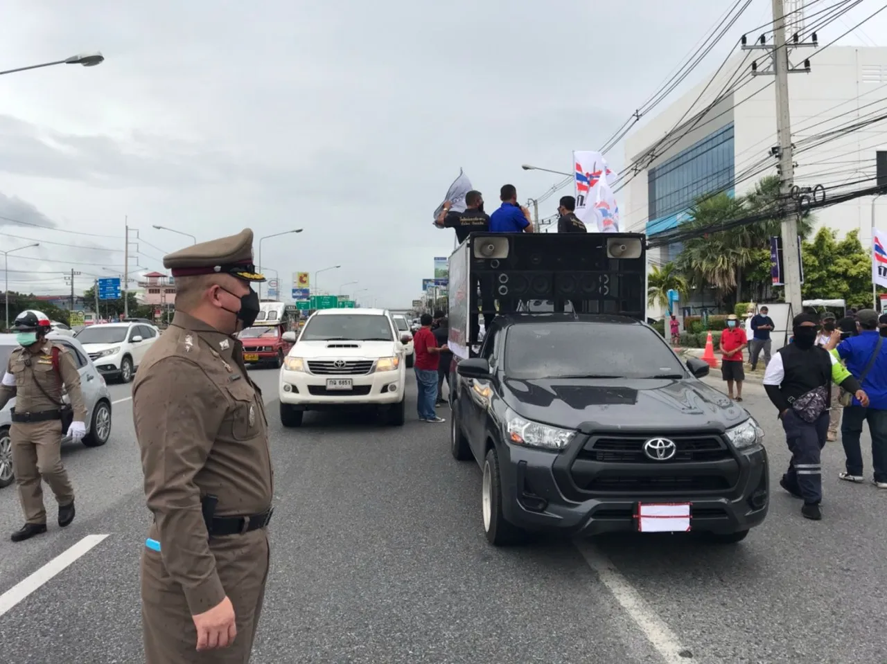 กลุ่มไทยไม่ทนชลบุรี รวมตัวกันนับร้อยคันบริเวณถนนอ่างศิลา-สุขุมวิท เพื่อมุ่งหน้าเข้ากรุงเทพฯ ไปรวมกลุ่มกับคารม็อบขับรถไล่นายกฯ โดยไร้ความวุ่นวายหรือเหตุรุนแรงใดๆ ทุกคันขับไปทาง ถ.สุขุมวิท