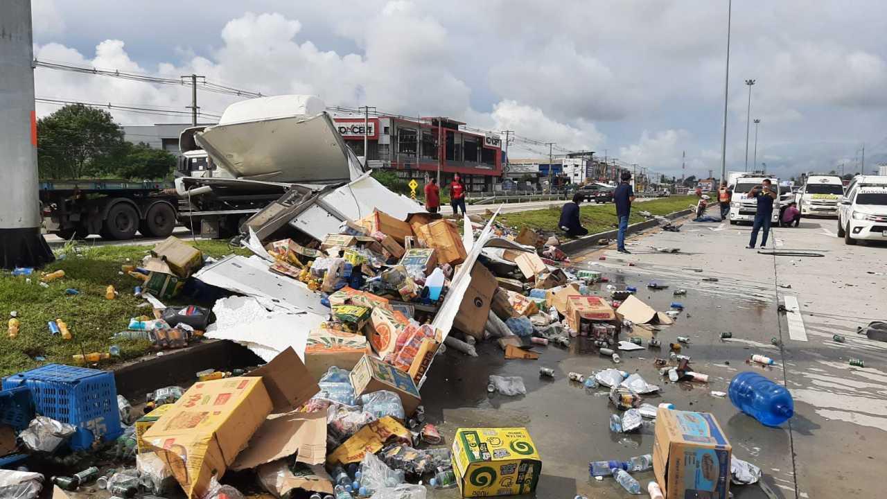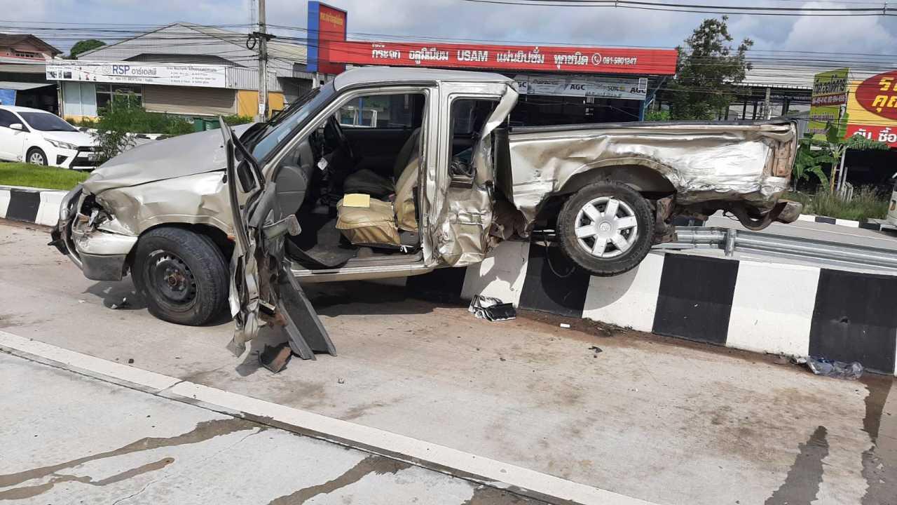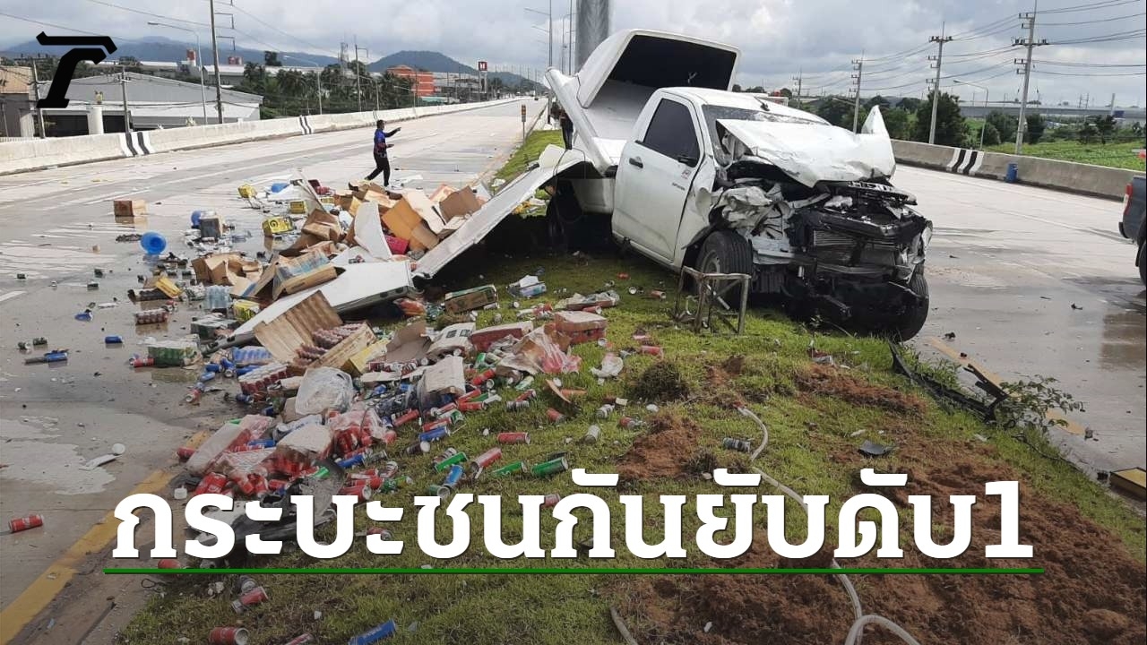 กระบะเฉี่ยวชนรถตู้ทึบส่งสินค้าจนฉีกกระจุย ก่อนที่รถกระบะจะกระเด็นกระดอน ร่างคนขับถูกเหวี่ยงออกนอกรถ กะโหลกแตกเสียชีวิตคาทางต่างระดับมาบเอียง-อมตะซิตี้ ฝั่งขาเข้า ที่ ต.บ่อวิน อ.ศรีราชา