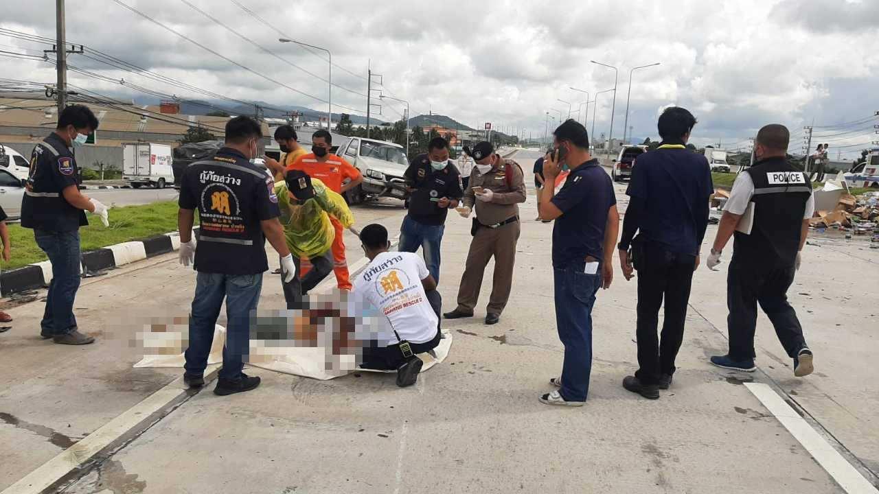 เมื่อเวลา 10.00 น. วันที่ 22 ก.ย. 64 ร.ต.อ.ธัชกร นารานันทน์ญา ร้อยเวรสอบสวน สภ.บ่อวิน อ.ศรีราชา จ.ชลบุรี ได้รับแจ้งเกิดอุบัติเหตุบนทางต่างระดับมาบเอียง-อมตะซิตี้ (ขาเข้ากบินทร์บุรี) ม.8 ต.บ่อวิน อ.ศรีราชา จ.ชลบุรี มีผู้เสียชีวิต หลังรับแจ้งได้ประสานเจ้าหน้าที่หน่วยกู้ภัยศีลธรรมสมาคมบ้านบึง จุดบ่อวิน ร่วมตรวจสอบในที่เกิดเหตุ