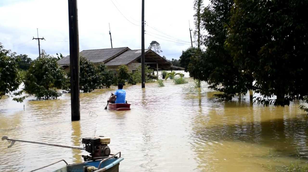 น้ำท่วมตราดน่าห่วงที่ ต.ห้วยแร้ง ในพื้นที่ อ.เมืองตราด และ ต.สะตอ กับ ต.ประณีต ของ อ.เขาสมิง มีระดับน้ำสูงขยายวงกว้าง ชาวบ้านเดือดร้อนหลายร้อยครัวเรือน ชุมชนโภคภัย เขตเทศบาลเมืองน้ำสูง 1 ม.