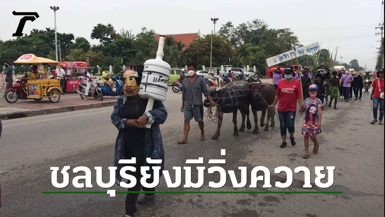การจัดงานประเพณีวิ่งควายในปีนี้ มีเพียงการแห่เกวียนกัณฑ์รอบตลาดเมืองชลบุรีเท่านั้น ตามความเชื่อหากไม่มีการจัดงานวิ่งควาย จะเกิดไฟไหม้ใหญ่ในตัวเมืองชลบุรี ส่วนการวิ่งควายเร็ว ประกวดสุขภาพควาย รวมทั้งการละเล่นต่างๆ งดหมดเพราะเกรงว่าจะเป็นการรวมคน ก่อให้เกิดการแพร่ระบาดไวรัสโควิด-19 ซึ่งการจัดงานในครั้งนี้ยังเป็นการอนุรักษ์ควายไทยให้คงอยู่ในพื้นที่ จ.ชลบุรี อีกด้วย.