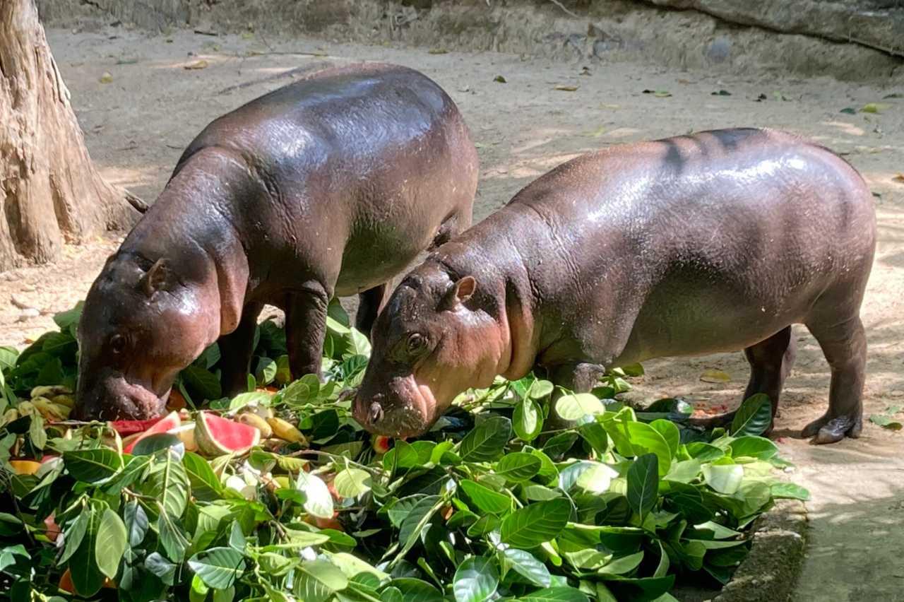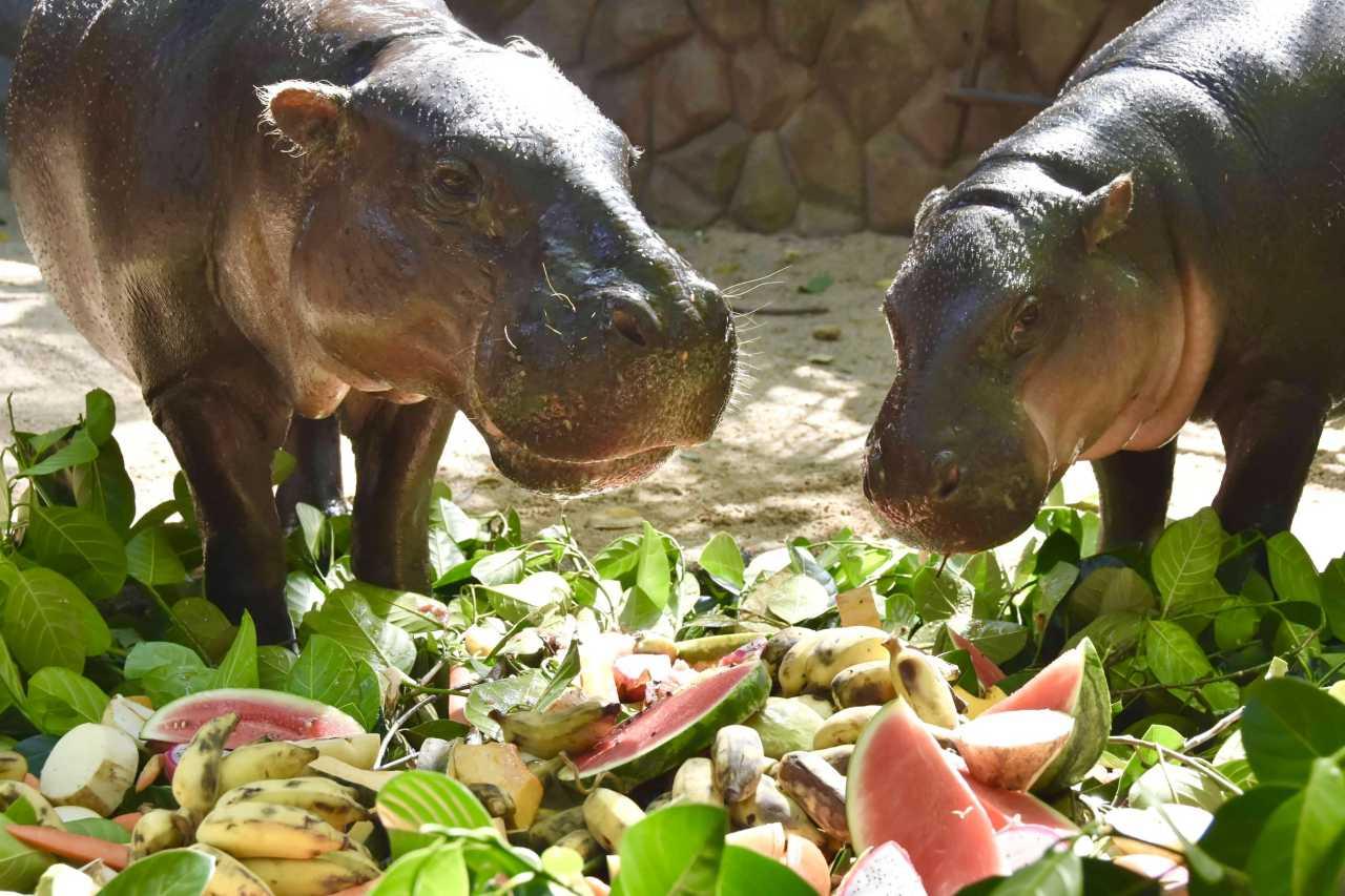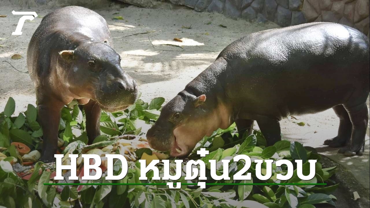ฉลองครบ 2 ขวบแล้ว "หมูตุ๋น" ฮิปโปแคระ เซเลบดัง แห่งสวนสัตว์เปิดเขาเขียว ชลบุรี จัดเค้กก้อนยักษ์สุดพิเศษ ให้เป็นของขวัญมีทั้งผัก และผลไม้ของโปรดหลากหลายชนิดให้กินพร้อมคุณแม่โจน่า