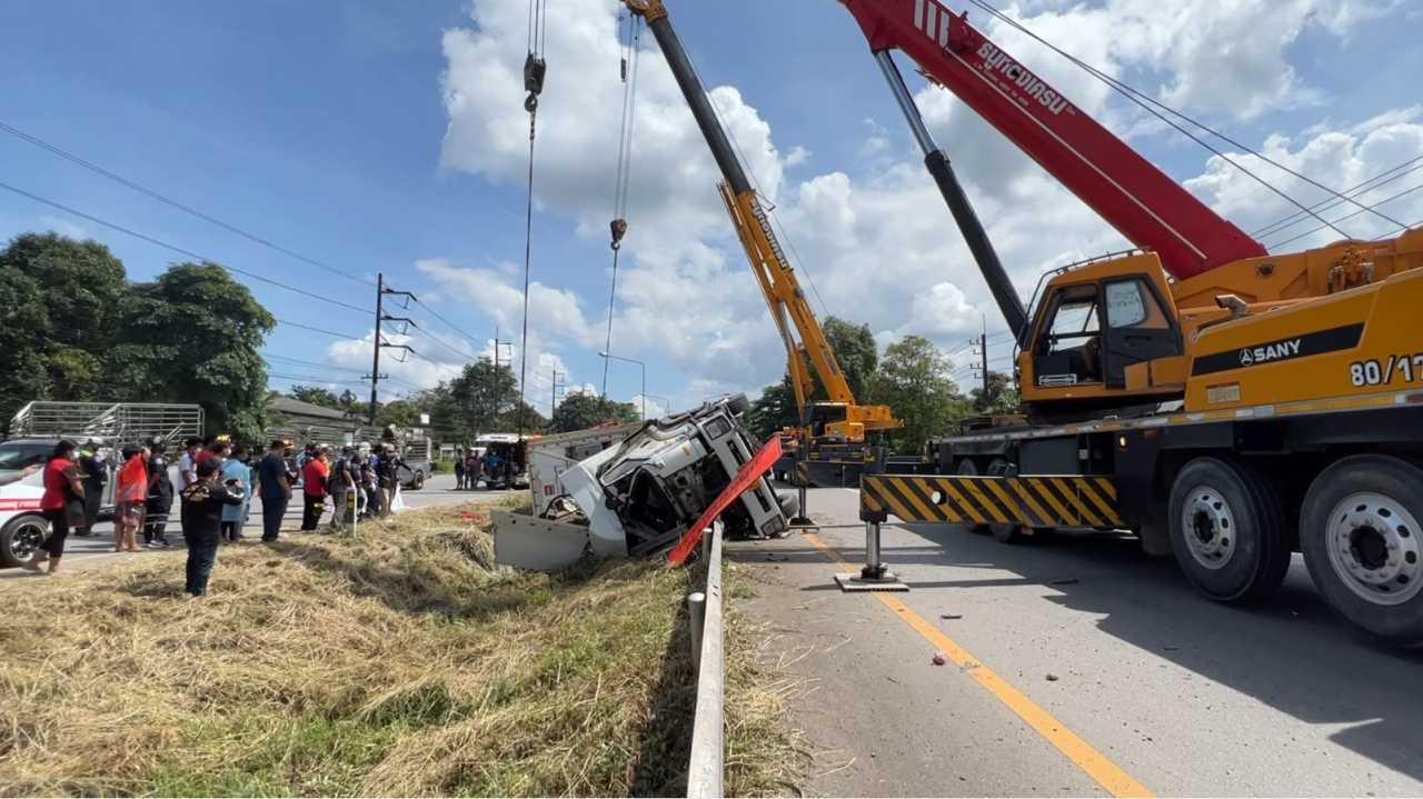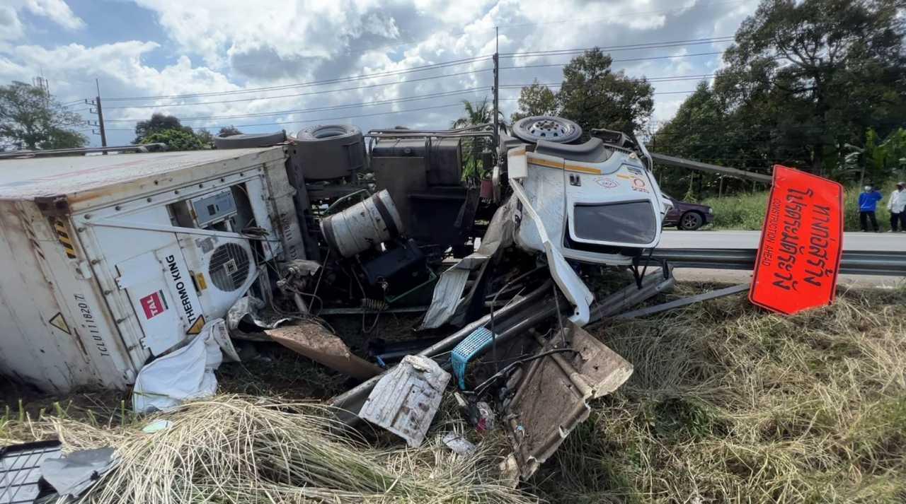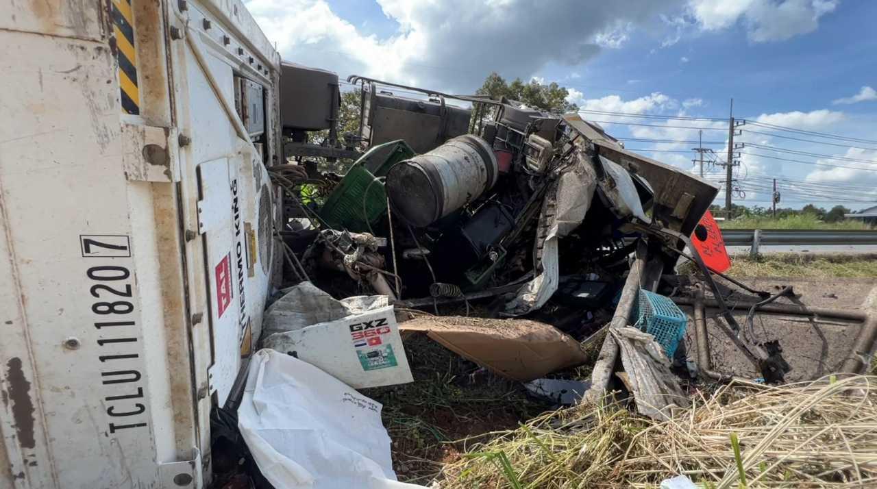 หลังจากตรวจสอบในที่เกิดเหตุแล้วพบร่างของผู้เสียชีวิตหนึ่งราย สภาพร่างเละ ชิ้นส่วนเครื่องในกระจายเกลื่อนอยู่ภายใต้ตู้คอนเทนเนอร์ที่ทับร่างอยู่ แต่ที่น่าสลดไปกว่านั้นยังหาศีรษะของผู้เสียชีวิตไม่เจอ โดยขณะนี้เจ้าหน้าที่ต้องรอให้ผู้เชี่ยวชาญทำการวิเคราะห์สถานการณ์แล้วจึงยกตู้คอนเทนเนอร์ลอยออกมาจากนั้นจึงจะทำการค้นหาศีรษะของผู้เสียชีวิตให้พบอีกครั้ง จากการตรวจสอบในเบื้องต้นแล้วพบว่ารถตู้คอนเทนเนอร์ดังกล่าวบรรทุกลำไยมาเต็มตู้ก่อนที่จะเกิดเหตุสลดขึ้น